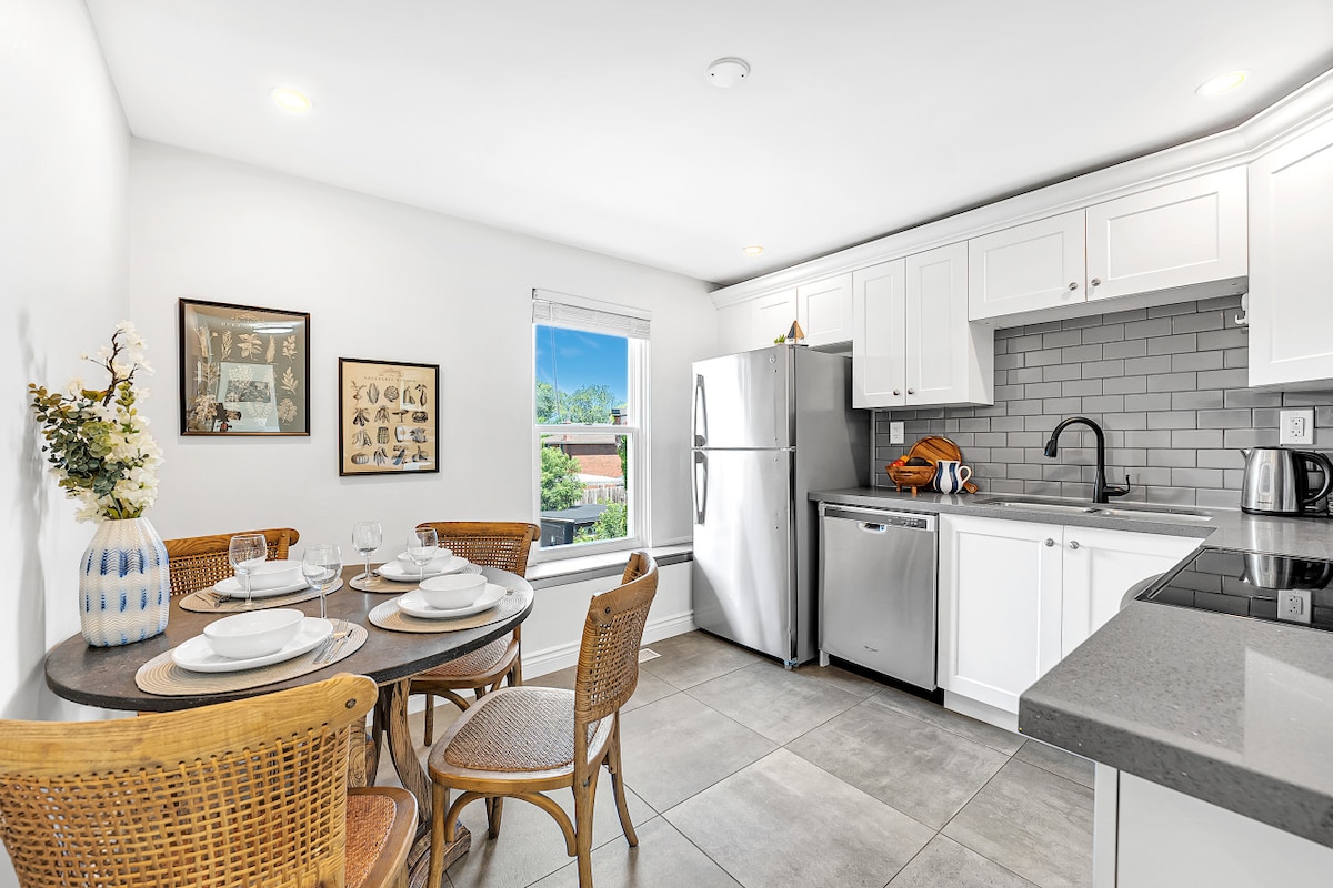 La Gallery Suite, cerca de Locke St. y McMaster, es ideal para estancias de negocios o de placer. Esta luminosa suite de concepto abierto con dormitorio separado cuenta con obras de arte únicas del artista de Guelph Ryan Price. Ubicada encima de una tranquila clínica de RMT, disfrutarás de una estancia tranquila y privada. A poca distancia a pie de tiendas y cafeterías de moda. Aparcamiento gratuito incluido para tu comodidad. ¡Reserva ahora para experimentar una mezcla de comodidad, arte y conveniencia!