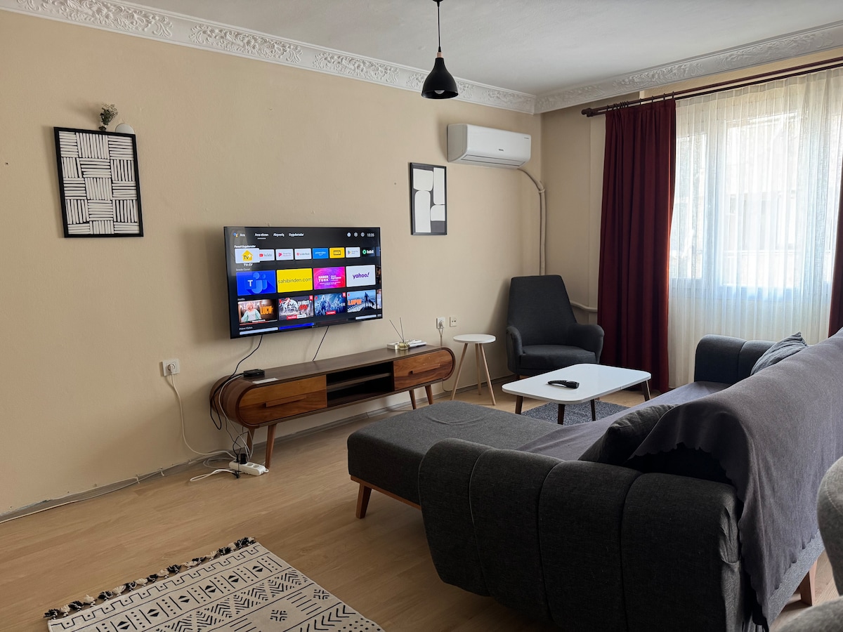 Explora las vibrantes calles de Izmir que conducen al mar, prometiendo una variedad de entretenimiento y experiencias únicas a cada paso. Nuestro apartamento céntrico ofrece fácil acceso a los encantos de la ciudad, lo que te permite crear recuerdos inolvidables. Con un diseño de interiores cuidadosamente seleccionado, este alojamiento ofrece comodidad y una sensación de hogar. Reserva ahora y abraza el esplendor de Esmirna en un entorno acogedor.