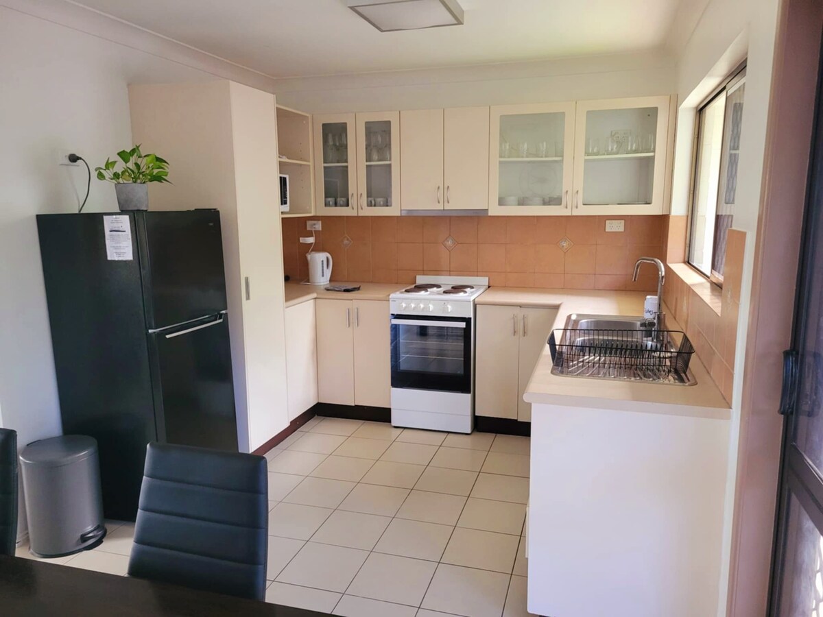 Bamboo Villa es un refugio privado, con aire acondicionado y que admite mascotas en el corazón de Edge Hill, el principal barrio residencial de Cairns, ideal para profesionales, parejas o familias pequeñas que buscan cafés que admiten mascotas y calles frondosas. Al otro lado de la calle del Jardín Botánico, a poca distancia de restaurantes, cafeterías y tiendas de conveniencia. A 5 minutos del aeropuerto y del centro de la ciudad. Nuestro alojamiento tiene todas las comodidades que necesitas. Con una zona delantera cercada y un patio trasero seguro.