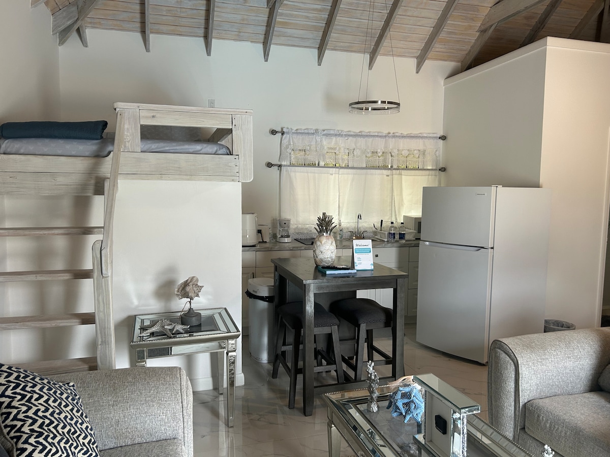 Pink Loft se encuentra en la hermosa bahía de Governor 's Harbour Bay con vistas a Cupid' s Cay. En el piso superior de un edificio renovado, el loft tiene una cocina totalmente equipada, un baño espacioso y está bellamente amueblado con vibrantes colores tropicales y muebles nuevos y nítidos. Las playas, tiendas y restaurantes están a pocos pasos, y las puestas de sol desde el balcón son espectaculares.