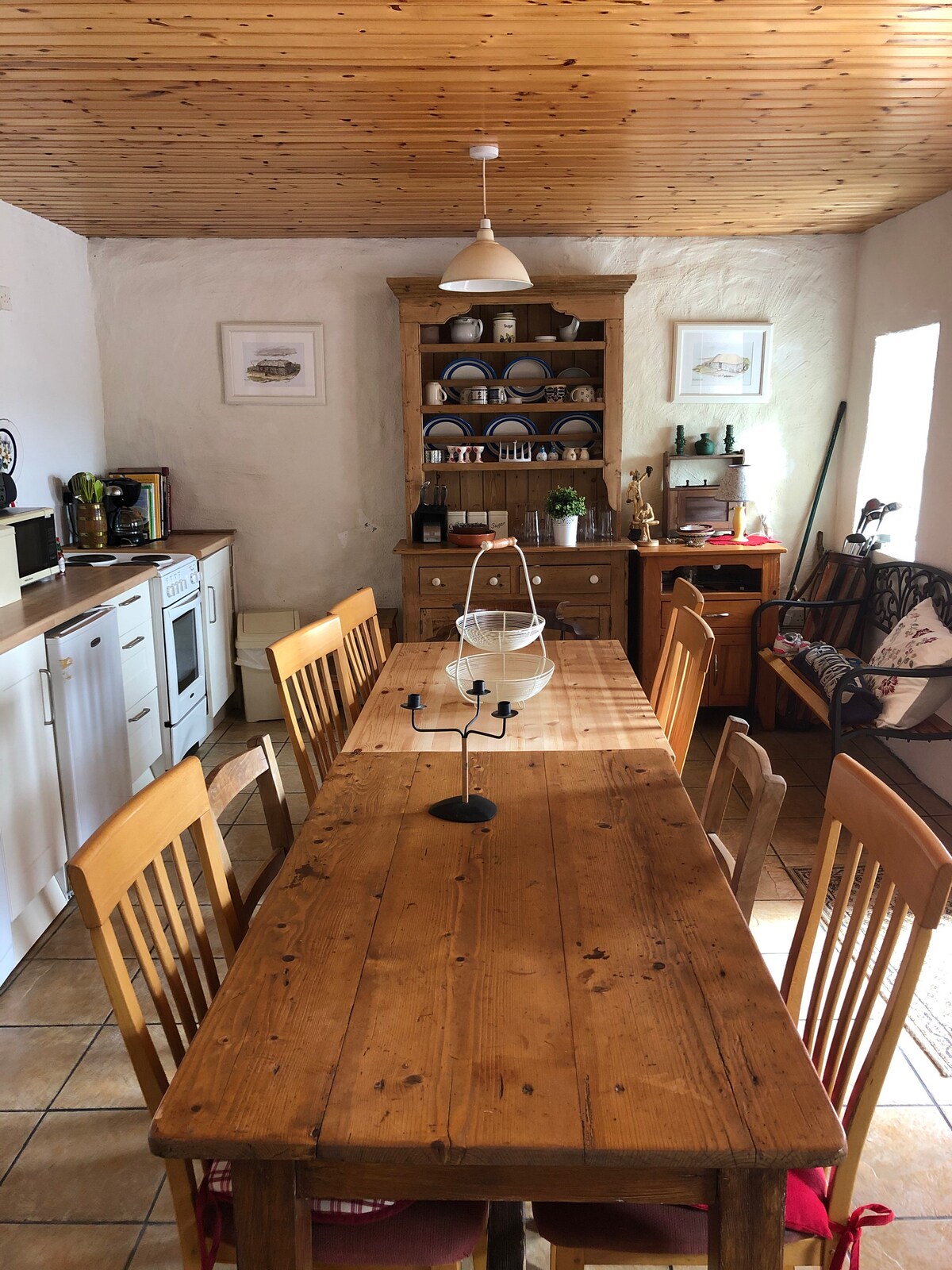 Dormitorios elegantes pero acogedores en nuestra casa de campo de época. En tu alojamiento se incluye un magnífico desayuno irlandés completo con panes horneados en casa. * opción vegana/ vegana disponible. Disfruta de una deliciosa cena casera por la noche, utilizando solo excelentes alimentos de origen local, con ensaladas de verduras y frutas de nuestro jardín. Nuestra acogedora cocina de campo es tu comedor privado, con hermosas sábanas y vajilla. Nuestras fotos te mostrarán algunos de nuestros platos. Consulta las reseñas.