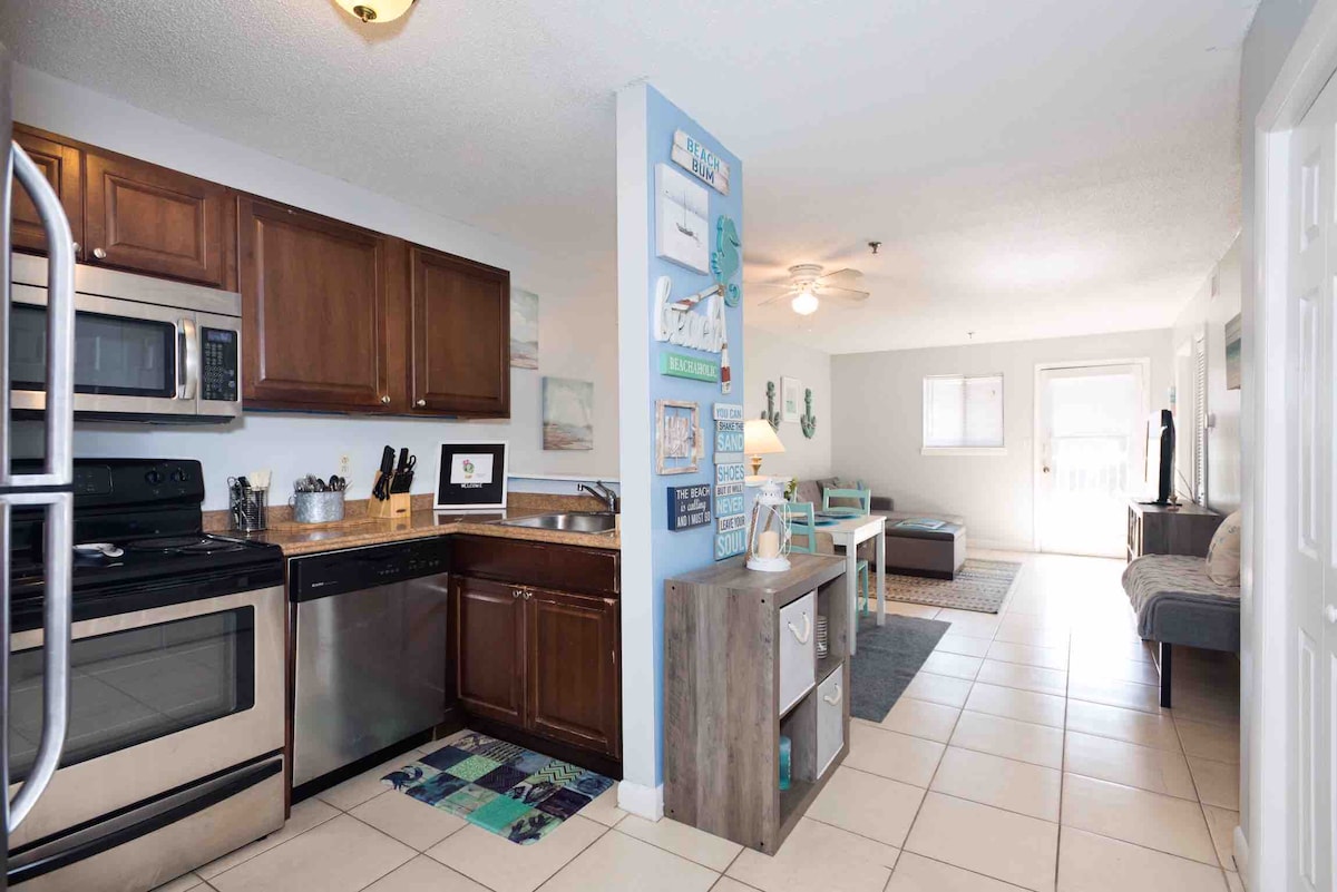 ¡Una perspectiva moderna de la vida en la playa! Villa de playa de 2 dormitorios y 2 baños con capacidad para 5 personas cómodamente en colchones de espuma viscoelástica. Relájate en la sala de estar después de un largo día en la arena. ¡Cocina totalmente equipada para cocinar casi cualquier comida que quieras preparar! ¡El aparcamiento y el registro de entrada son fáciles! ¡A 5-10 minutos a pie de la playa a través del pintoresco paseo marítimo! Observa cómo los cangrejos se mueven a lo largo del pantano o cómo las tortugas nadan en el arroyo de las mareas. ¡Mucha vida silvestre que ver! Disfruta del servicio de transporte de cortesía en carrito de golf que funciona cada hora en temporada.