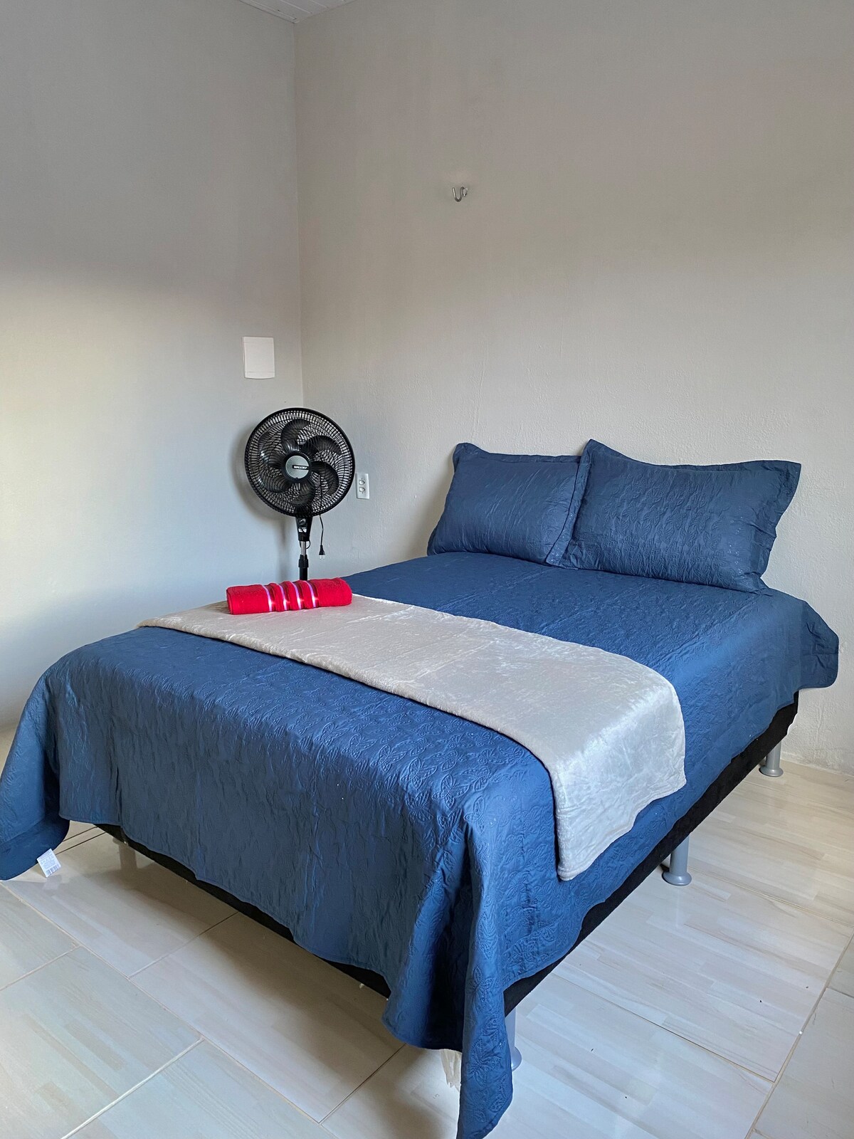OPCIÓN DE 3 DORMITORIOS Si quieres ir de fiesta, este no es el lugar ideal. Ambiente familiar. NO permito ruidos extremos. Tenemos tres suites También es posible instalar 12 hamacas en el espacio exterior y 5 en las habitaciones. 2 aires acondicionados y uno en cada habitación Terraza equipada con: Parrilla Congelador Mesa para 8 Cocina adicional Tenemos un baño al aire libre y una ducha Sinuca En este momento no ofrecemos hamacas, sábanas y toallas, ¡solo almohadas y ropa de cama!