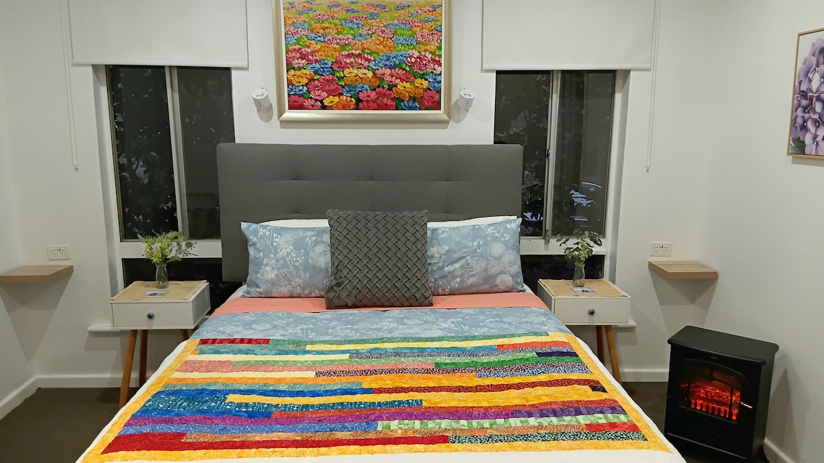 Disfruta de una de mis dos acogedoras habitaciones con una cama doble, relájate en un exuberante jardín y experimenta una vista panorámica de las colinas. La casa ha sido completamente renovada de una manera sofisticada e incluye un patio. Los techos altos, las vigas de madera, los arcos y las grandes ventanas crean un ambiente único. El transporte público en autobús está a 5 o 13 minutos a pie, dependiendo de a dónde vayas. El centro comercial más cercano está a 2,3 km. El aeropuerto está a 26 minutos en coche y el centro de Perth a 40 minutos.