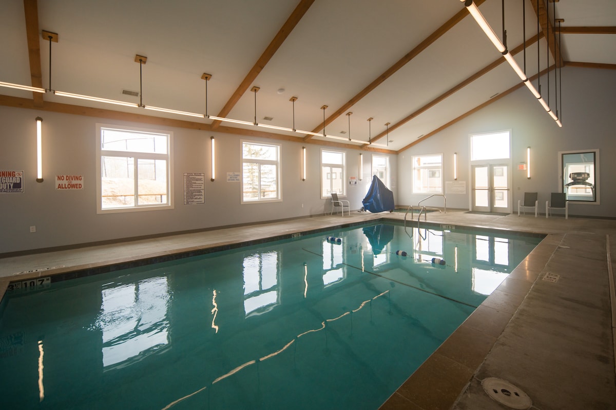 Acogedor condominio de montaña | Chimenea + piscina cubierta/jacuzzi