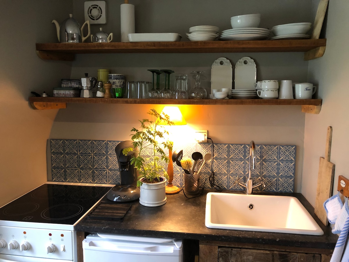 Nuestro apartamento de 55 metros cuadrados llamado "Jardin Prangeleu" ofrece un dormitorio doble y uno individual, así como una sala de estar estudio con cocina. El departamento puede alojar de 2 a 3 personas como máximo. Con hermosas vistas en la parte delantera y trasera, forma parte de una antigua granja situada en un jardín permacultural salvaje de media hectárea, rodeada de bosques protegidos de hayas y robles. Las renovaciones se hicieron con gusto y siguiendo nuestro corazón ecológico. Estamos cerca de los lugares turísticos de la región, como Durbuy o Lieja.