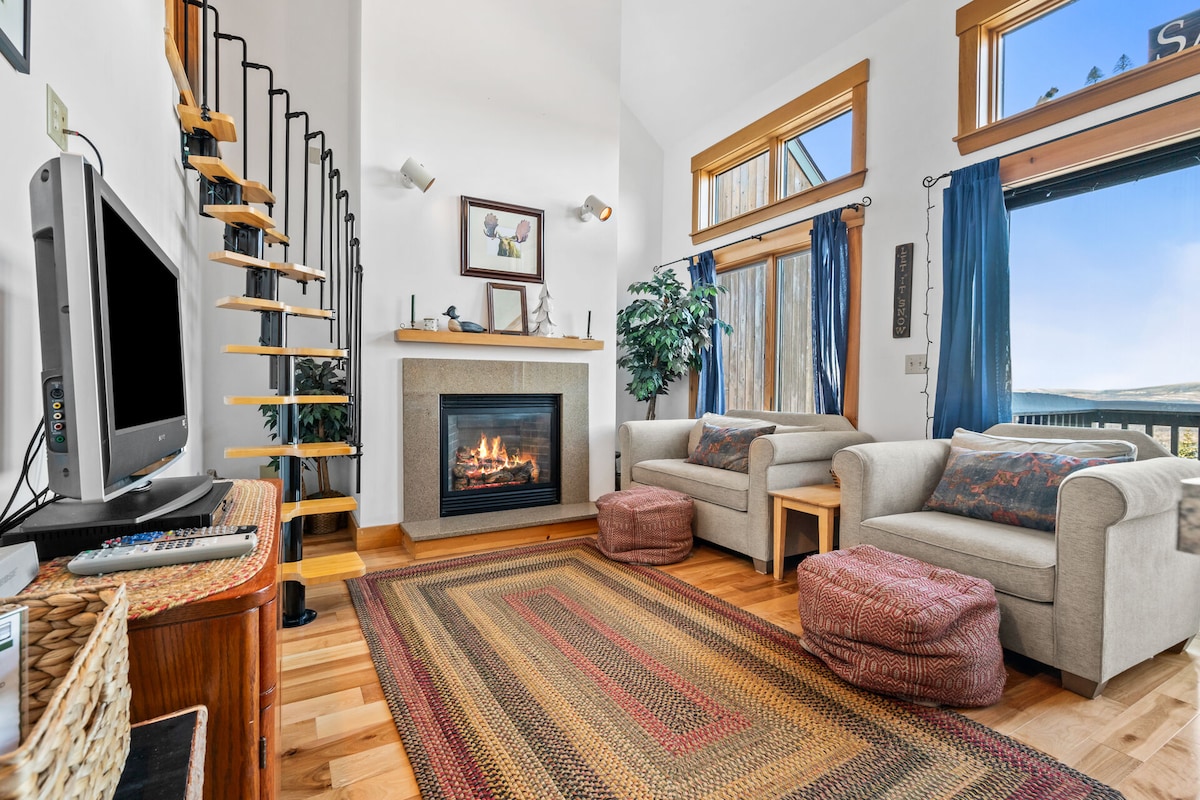 Acogedora cabaña de madera con vistas a la montaña, jacuzzi y chimenea