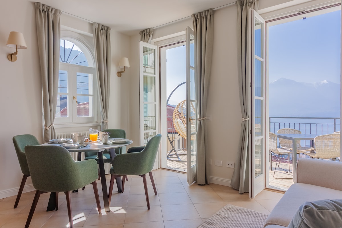 Vistas al lago sin obstáculos desde un apartamento bellamente restaurado de 1800, perfectamente ubicado en el paseo marítimo de Lenno, Tremezzina. A solo 200 metros de la parada del ferry con conexiones directas a Bellagio, Varenna, Villa Carlotta y la ciudad medieval amurallada de Como. A pocos pasos de Villa Balbianello y Villa Balbiano. Relájate con amigos con un aperitivo en la elegante sala de estar, con techos de estuco originales de la década de 1920, mientras las cortinas se deslizan en la brisa del lago. Pura vida en Como.