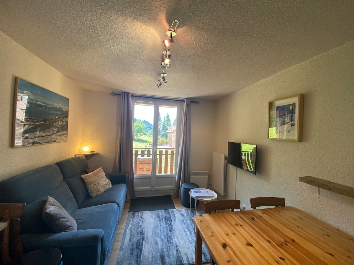 Apartamento muy agradable en la planta baja con balcón, que consta de 2 habitaciones, con sala de estar, zona de montaña y 1 dormitorio + aparcamiento gratuito en el edificio + bodega/guardaesquís privado. Situado a 300 metros del centro del pueblo y de las tiendas, a 200 metros del telesilla y a 2 km del campo de golf. Estación familiar que ofrece muchas actividades de ocio, ideal para los amantes de las zonas verdes o los deportes de invierno. A 30 minutos de Saint-Claude o Divonne-les-Bains y a 45 minutos de Ginebra.