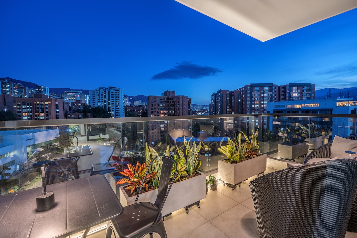Moderno apartamento en Poblado • Piscina en la azotea • Vistas desde el balcón