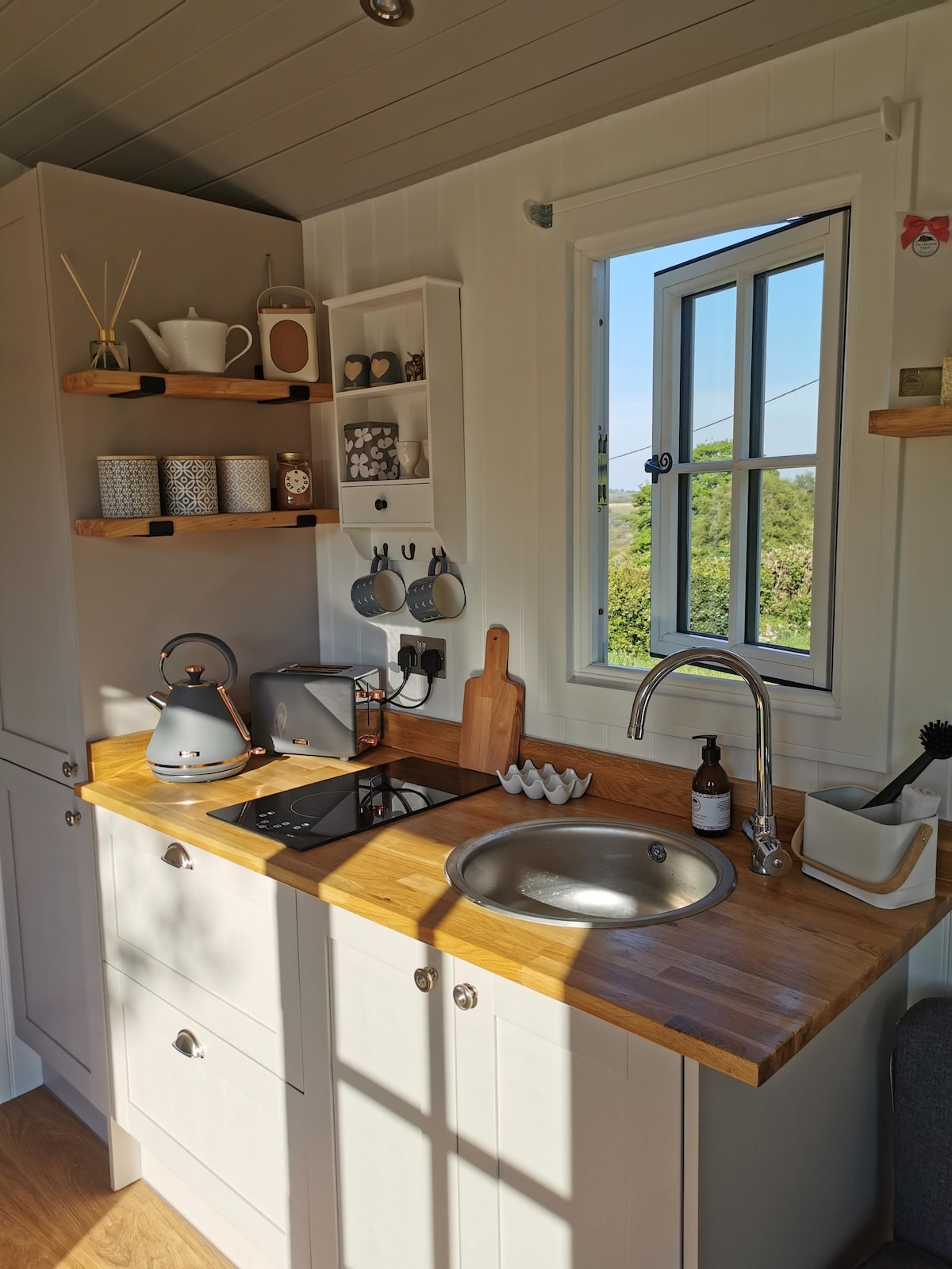 Little Gables se encuentra justo aafueras del idílico pueblo de Dunsford, en el límite del Parque Nacional de Dartmoor. Una casa de huéspedes independiente diseñada por un arquitecto con alojamiento estilo cabaña boutique para dos personas. El moderno interior rústico está diseñado para una estancia lujosa y confortable que consta de una espaciosa cocina de planta abierta y sala de estar con techo abovedado, baño con ducha a ras de suelo y una cama tamaño emperador (2 m x 2 m) en el dormitorio con bañera (con vistas) en la habitación.