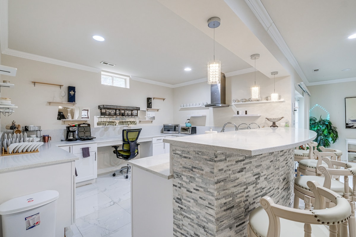 Te damos la bienvenida a un espacioso y privado apartamento en el sótano con su propia entrada y llegada autónoma. Ponte cómodo con tus huéspedes en un espacio que tiene un dormitorio con una cama tamaño king, un televisor inteligente de 85 pulgadas, sección suave, baño privado, baño y cocina, todo en el mismo espacio. Ninguno de los servicios se comparte. El conjunto de cocina totalmente equipado tiene todo lo necesario para cocinar y calentar tus comidas. La suite de invitados es todo el apartamento en el sótano, que forma parte de una casa más grande donde vive el anfitrión.