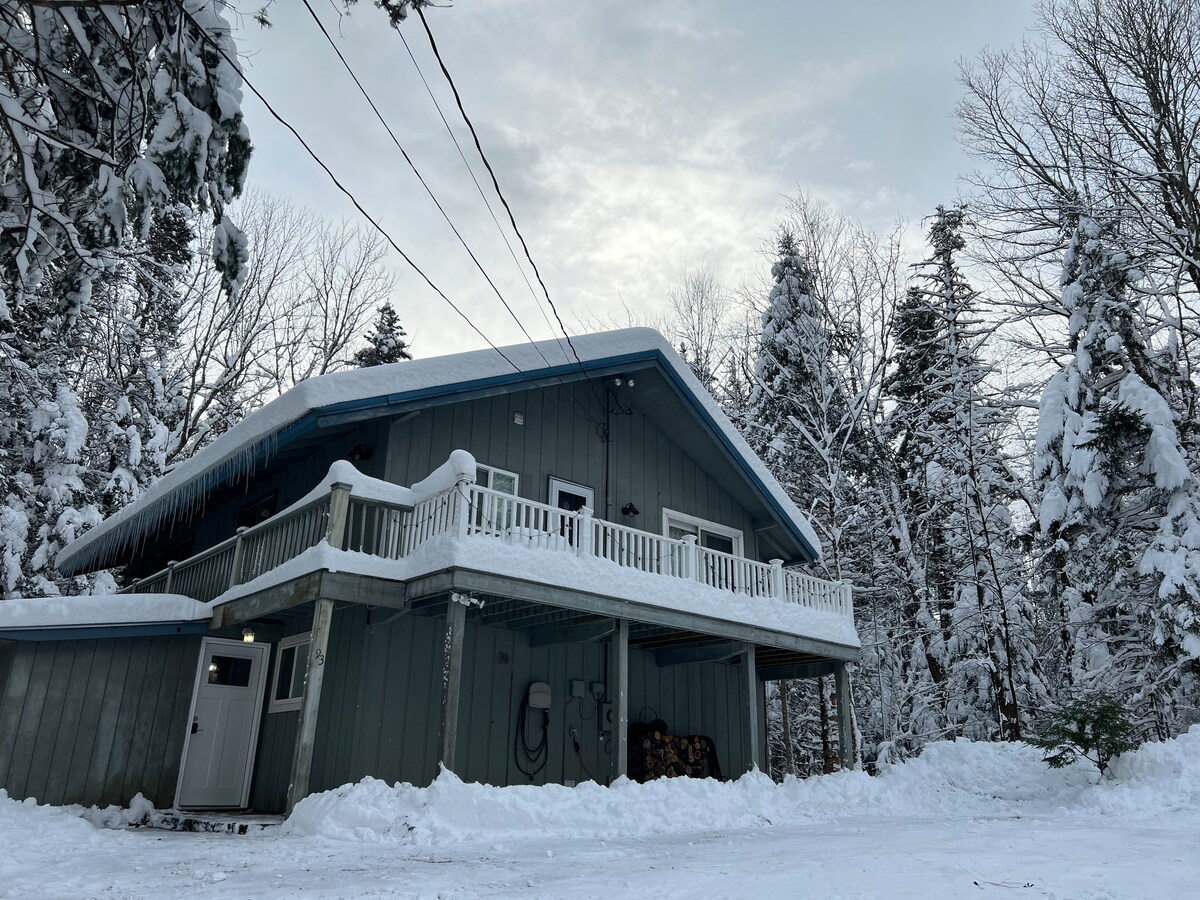 Acogedor chalet te espera para tu estadía. Este alojamiento se encuentra en poco menos de 4 acres. Siéntate y disfruta del solárium climatizado y contempla los bosques que te rodean. Es posible que tengas la suerte de ver uno de los alces u osos que visitan la propiedad. ¡Cocina remodelada en 2023! Planta abierta con chimenea de leña. El dormitorio principal tiene una cama tamaño king nueva y literas individuales. Sótano terminado con nueva cama tamaño queen y litera doble arriba. ¡Casa amigable para niños! ¡A pocos minutos de Stratton Mtn y Mt Snow para esquiar y jugar al golf! Disc golf gratuito en la propiedad.