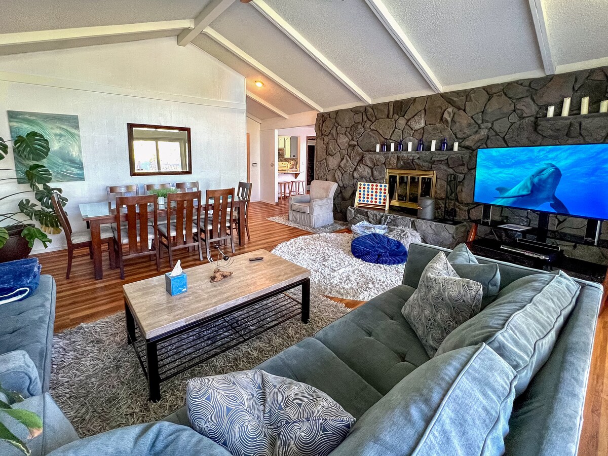 ¡Hay espacio para todos en esta casa bien equipada! El dormitorio principal tiene una cama tamaño king, la habitación de invitados 1 tiene una litera con una cama individual sobre una cama completa, la habitación de invitados 2 tiene una cama completa/queen y la habitación familiar aislada tiene un sofá cama extraíble de tamaño completo. Hay un precioso patio con una bonita vista de Candy Mountain. La cocina y el patio de barbacoa contiguo son un espacio cómodo para relajarse y preparar una buena comida.