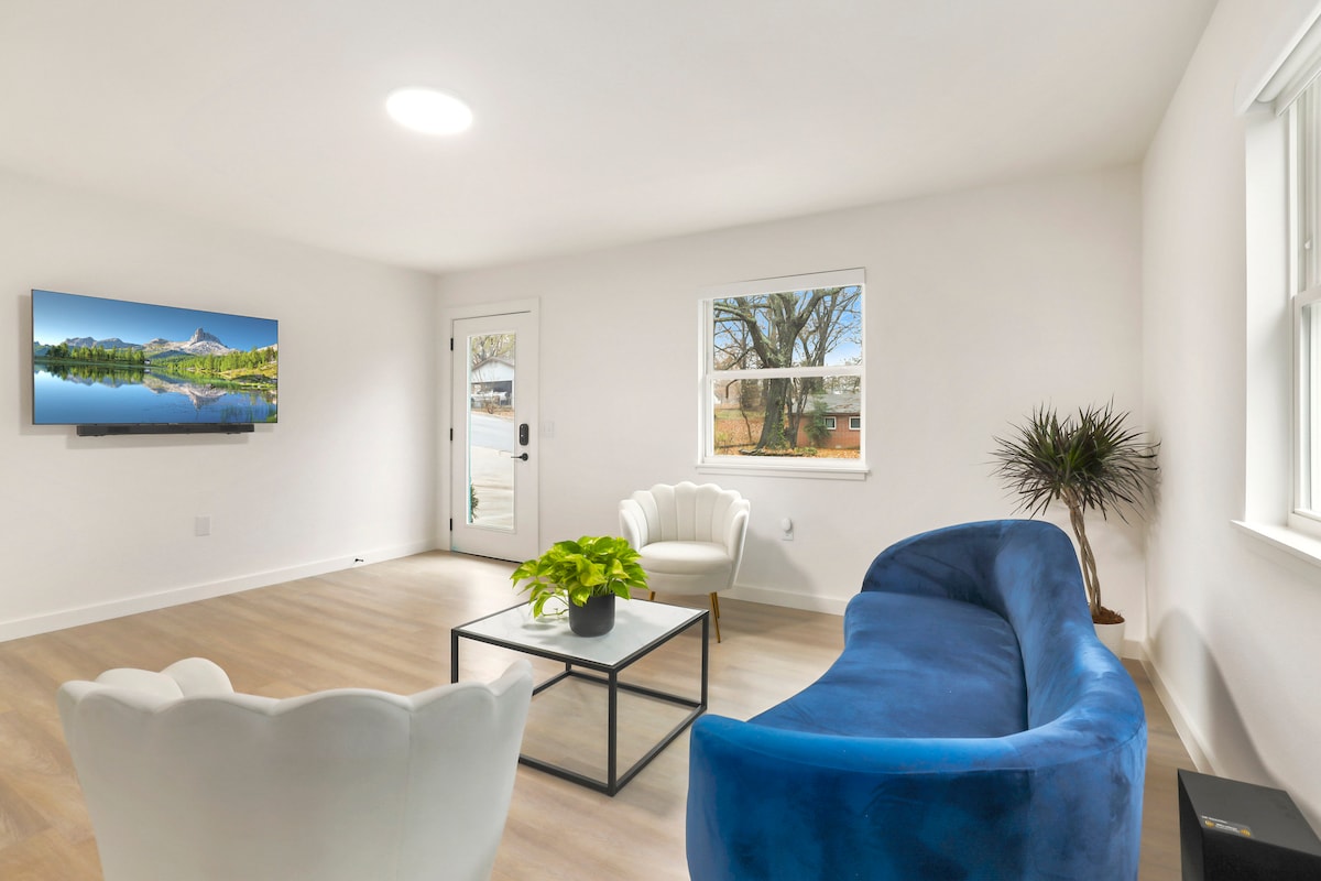 Camina fácilmente a la plaza del centro de la ciudad para visitar museos de clase mundial, rutas para pasear en bicicleta y a pie, restaurantes y tiendas o sube fácilmente a la autopista para explorar todo lo que NWA tiene para ofrecer. Con nuestra cocina totalmente equipada, lavandería en la unidad, buena conexión a Internet confiable y TV inteligente, y nuestros cómodos muebles, ¡tendrás una estancia increíble ya sea que salgas o te quedes en casa!