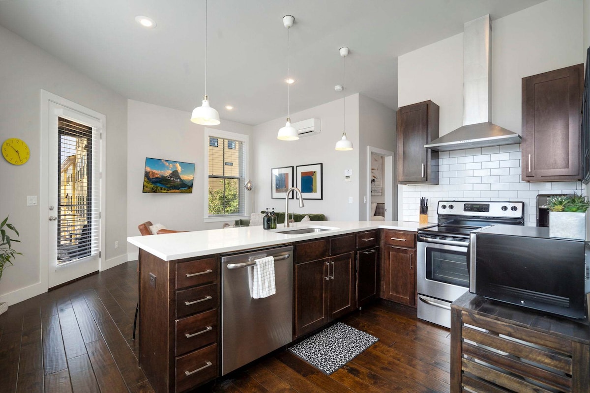 ¡Descubre Bentonville desde este elegante apartamento moderno de 2 camas y 2 baños! Perfectamente ubicado a pocos pasos de la vibrante plaza Bentonville, nuestro refugio se adapta cómodamente a seis personas. Disfruta de una cocina totalmente equipada, diseño contemporáneo y fácil acceso a senderos para bicicletas y al Museo Crystal Bridges. Ideal para los amantes del arte y los exploradores urbanos que buscan una base de operaciones elegante.
