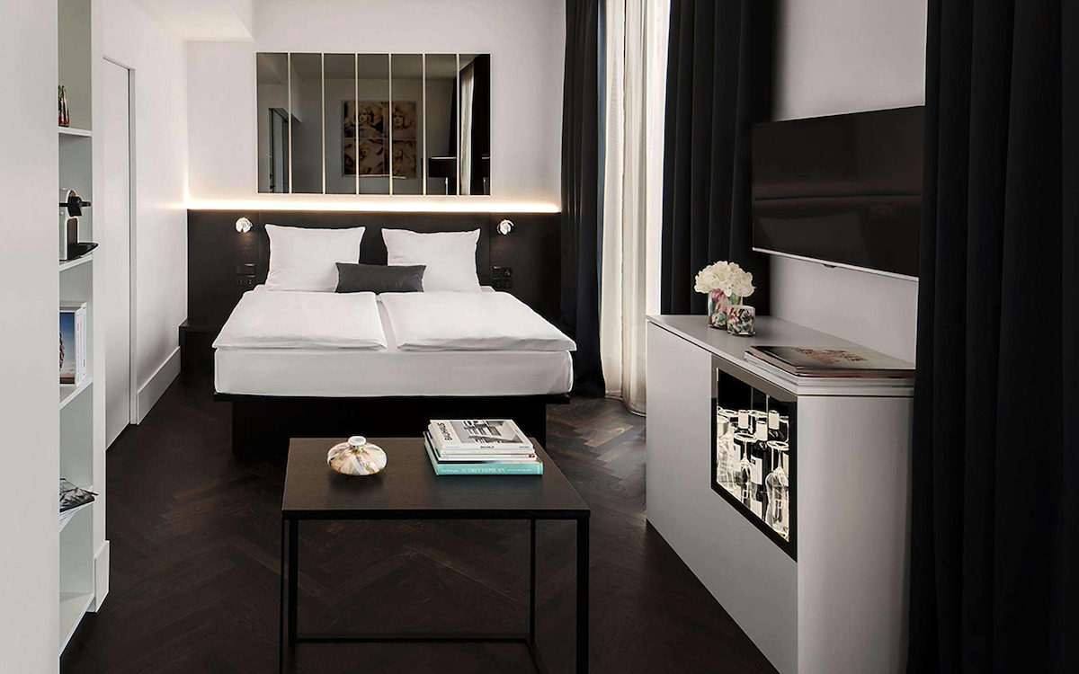 At 30 sqm, the L Apartment is perfect for longer stays or those who crave extra room to recharge. Featuring a separate living and sleeping area with a king-size bed and sofa bed, it comfortably accommodates up to 3 guests. A fully equipped kitchen, dining table, and sitting area make it feel like home, while amenities like a Nespresso machine, soundproof windows, and fast Wi-Fit. Nestled in Berlin Mitte, you’ll be within walking distance of the city's top restaurants