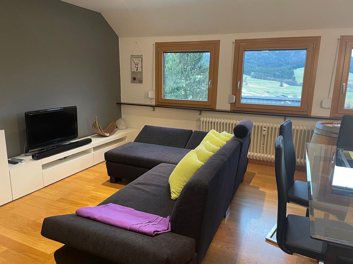 Apartamento de 2 habitaciones “Herzgrün” (36 metros cuadrados) amueblado con cariño para 2 personas (+ bebé). Vista de ensueño desde el balcón y sauna en la casa (compartida por una tarifa adicional). Deja el auto en el garaje subterráneo y comienza tu caminata directamente desde la casa. Muchas atracciones en la zona. Dos remontes y pistas de esquí de fondo a pocos pasos (con buenas condiciones de nieve)