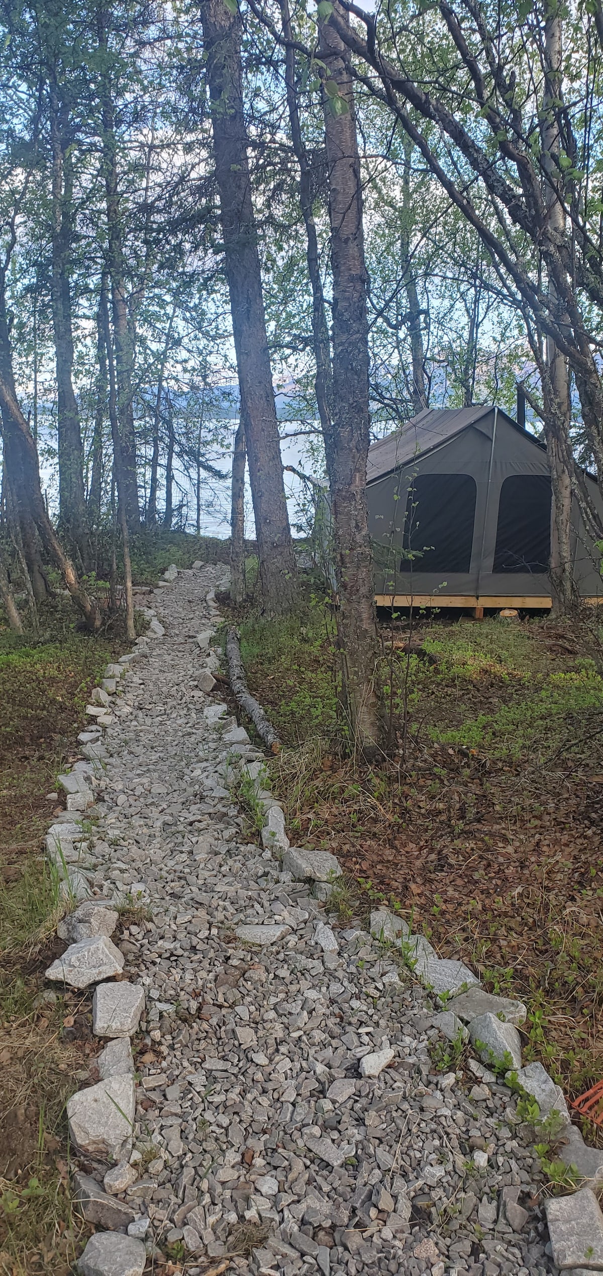 Alojamiento económico con vistas de un millón de dólares. Tienda de lona de 12 x 12 pies en una plataforma con sauna tradicional de Alaska de leña (baño de vapor) para bañarse y baño exterior cerca. A orillas del hermoso lago Clark. Recogida y traslado al aeropuerto incluidos. Cama «queen» Microondas Cafetera Hervidor eléctrico Estufa de leña Agua potable incluida. Parrilla con quemador lateral Tenemos repelente de osos para prestarte para tus caminatas. Podemos encender la sauna o la estufa de leña si es necesario. Sólo tienes que hacérnoslo saber.