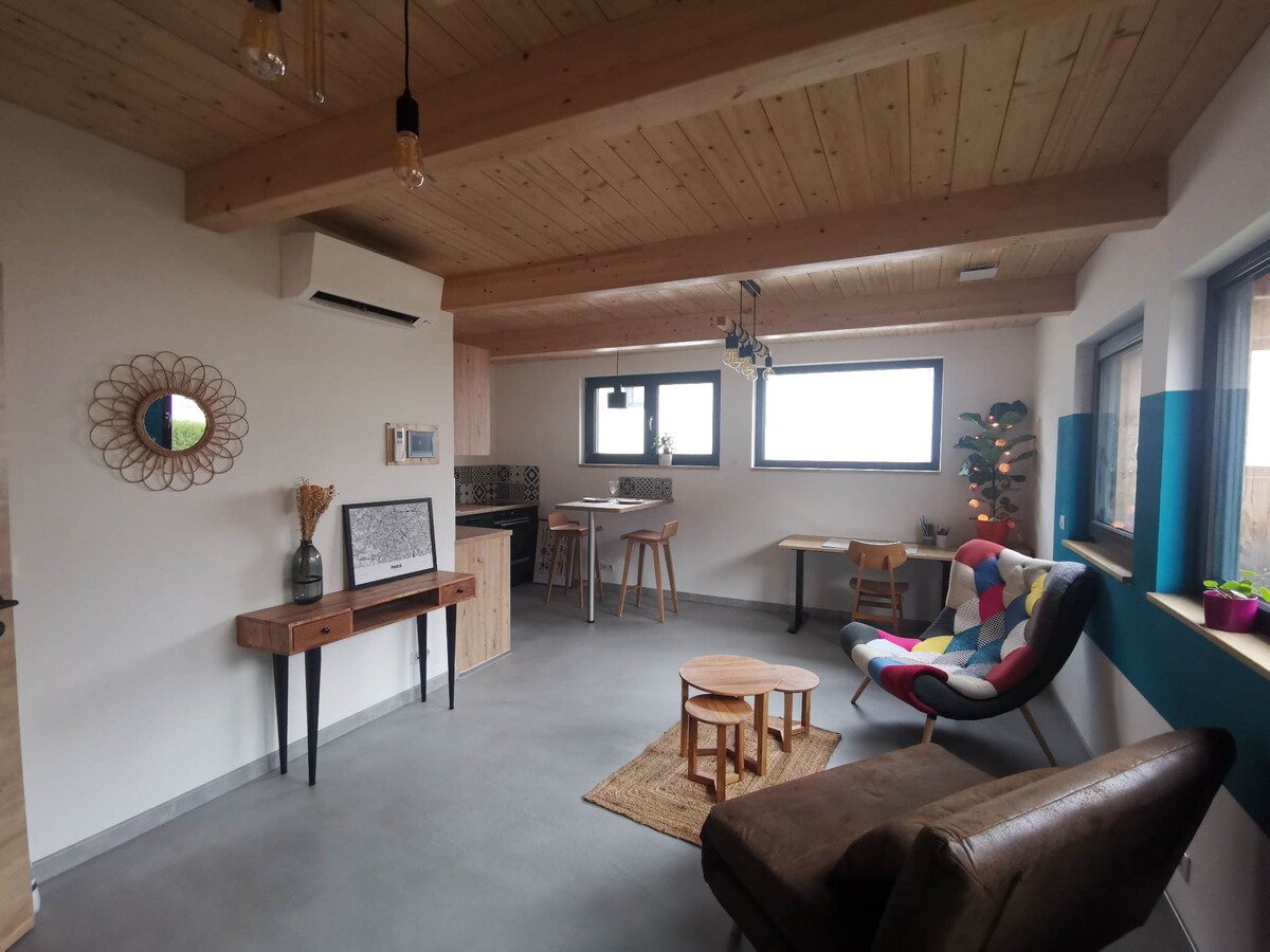Disfrute de un alojamiento con encanto situado idealmente, cerca de las calles peatonales, se puede aparcar fácilmente. Adecuado para perfiles profesionales. -Netflix disponible, TV conectada, WIFI de muy alta velocidad -Cama grande «Queen Size» 160*200 -Barra/espacio de trabajo -Cocina separada y equipada: horno, microondas, nevera, cafetera, hervidor -Lavadora, armario, zapatero -Ropa de cama, toallas, secador de pelo, plancha, -plaza de aparcamiento privada y gratuita