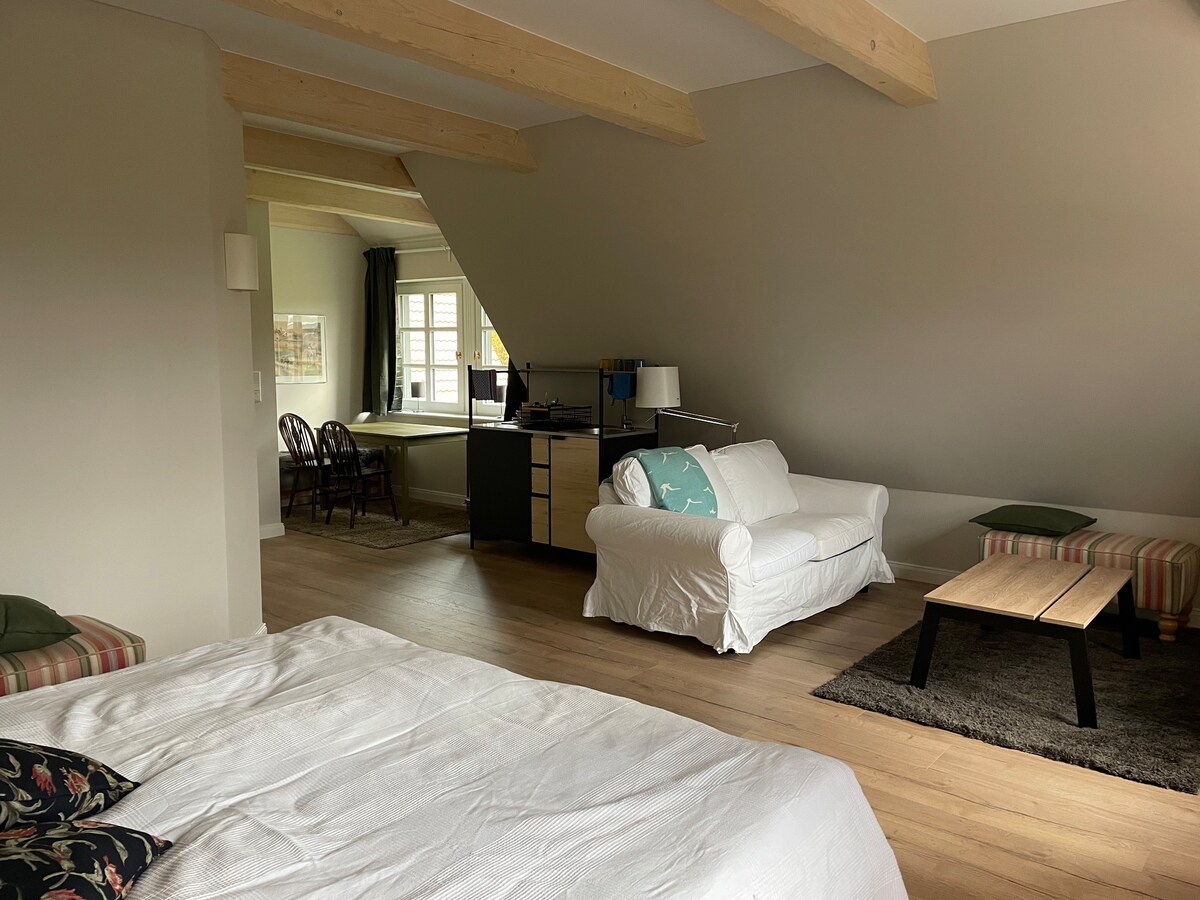 El alojamiento está situado en un pequeño edificio trasero con entrada independiente. Consta de una habitación con cama doble (1,80 x 2,0 m) y mesa de comedor, cocina americana y baño con ducha. Una pequeña terraza invita a relajarse en el jardín. Las bicicletas se pueden aparcar de forma segura en el patio trasero.