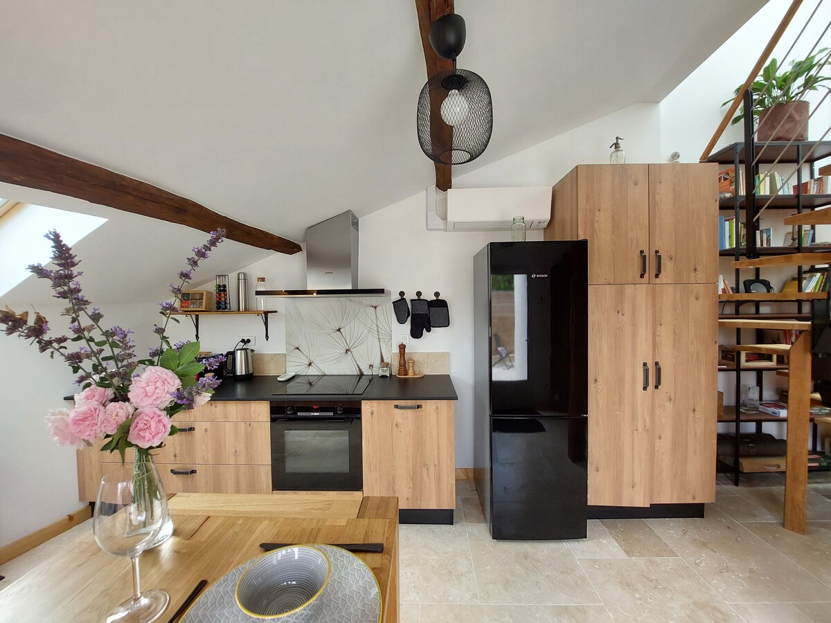 Con una ubicación ideal en la ruta del vino, entre Nuits-Saint-Georges y Beaune, loft en el primer piso de nuestra residencia principal (28 m²), con terraza privada cubierta (20 m²) con vistas a los viñedos clasificados. Piscina de agua salada, climatizada del 1 de mayo al 30 de septiembre, aparcamiento privado, entrada independiente. Decoración cuidada, cocina equipada, pantalla HD orientable de 140 cm, wifi. Brasero disponible. Dos bicicletas nuevas también disponibles. NO SE ADMITEN INVITADOS: el alojamiento es solo para dos personas. NO SE PERMITEN FIESTAS.