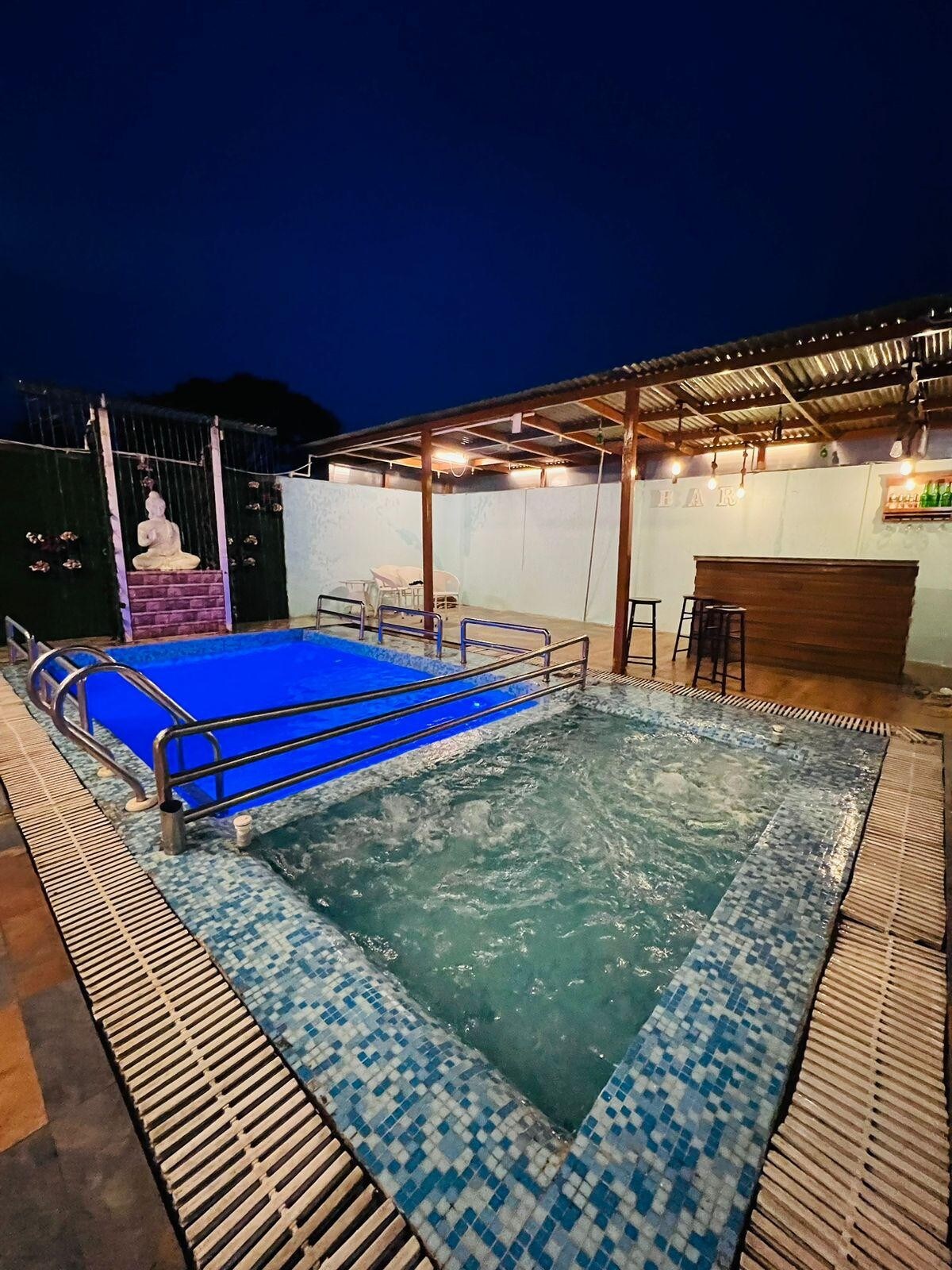 Relájate con tu familia en esta tranquila casa de huéspedes junto a la piscina en Bhopal. Disfruta de senderos en la selva, parrillas bajo las estrellas, pícnics organizados y desayunos al aire libre con vistas panorámicas. Explora joyas históricas cercanas como Sanchi Stupa y las ruinas de Islamnagar, o toma un corto paseo en auto hasta la Reserva de Tigres de Ratapani y los antiguos refugios de roca.