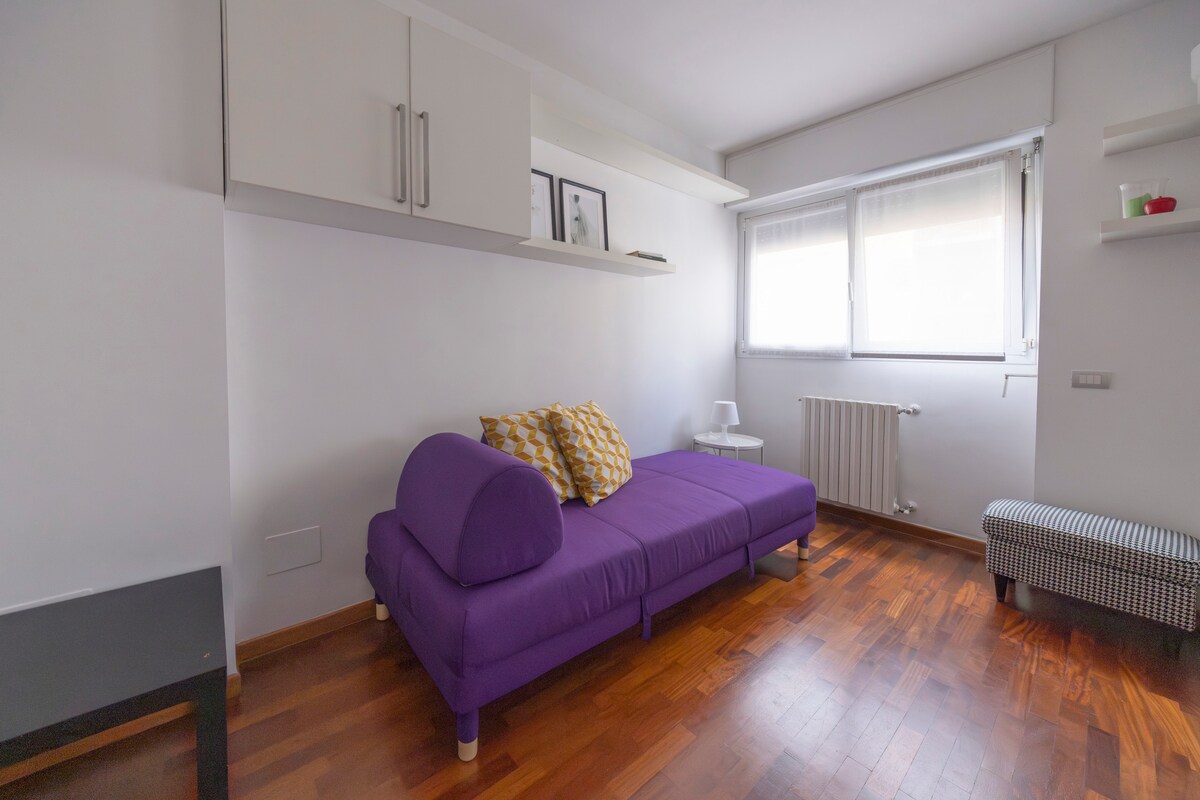 Relájate y recarga las pilas en este oasis de tranquilidad y elegancia. Amplio apartamento de dos habitaciones recientemente renovado que consta de: dormitorio con 1 cama de matrimonio y escritorio para trabajar. Sala de estar con un cómodo sofá cama francés, cocina con todo lo necesario para cocinar y un amplio baño con ducha a ras de suelo. Situado en el quinto piso, con un bonito balcón, en un edificio tranquilo a pocos pasos de la línea 1 del metro, que en solo 20 minutos te llevará al centro de Milán.