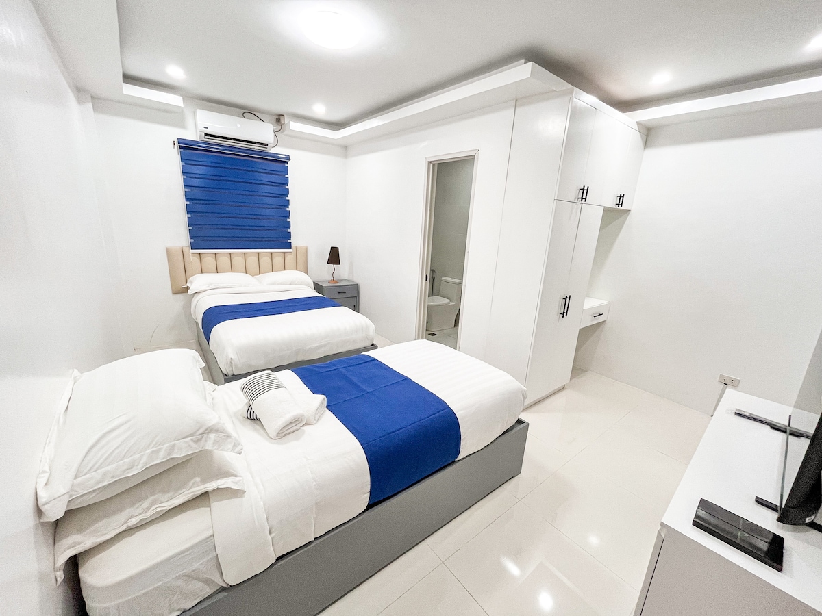 Todo el grupo disfrutará de un fácil acceso a todo desde este lugar céntrico 40 metros cuadrados. 5 camas mandaue premium Con cena Televisor inteligente de 32 pulgadas. Aire acondicionado Habitación privada Ventanas de vidrio Tipo de toldo Ubicación céntrica Cerca del municipio Cerca del mercado húmedo Cerca del mercado seco Cerca de playa de arena blanca Cerca de la vista a las montañas. Cerca de cascadas