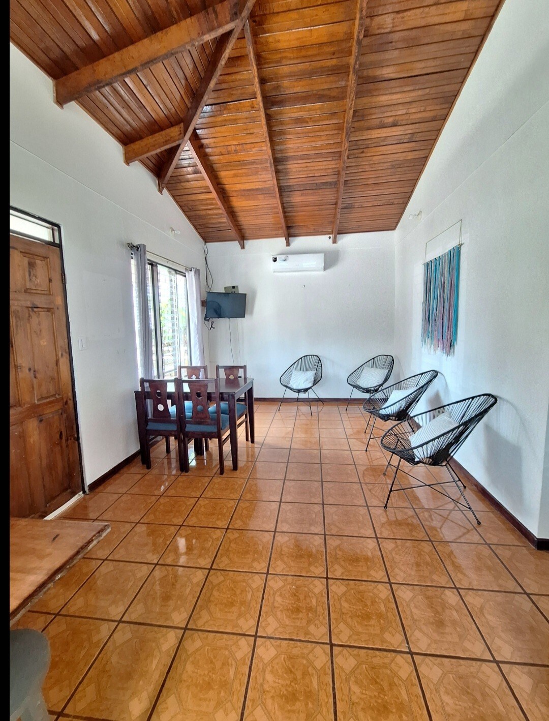 Casa Blue Rock Departamento en un primer piso hecho con amor con la mayor atencion para los detalles , con un gusto moderno y un estilo minimalista limpio lleno de luz. Una amplia sala con tres colchones cama, TV con cable internet 10 mega con WI FI ,con cocina una mesa de 5 lugares, baño privado con panel de ducha con hidrojets de masaje. Una recamara privada donde sale de el piso la famosa roca azul, con una cama King . Aire acondicionado y dos ventanales enormes con vista al bosque lluvioso