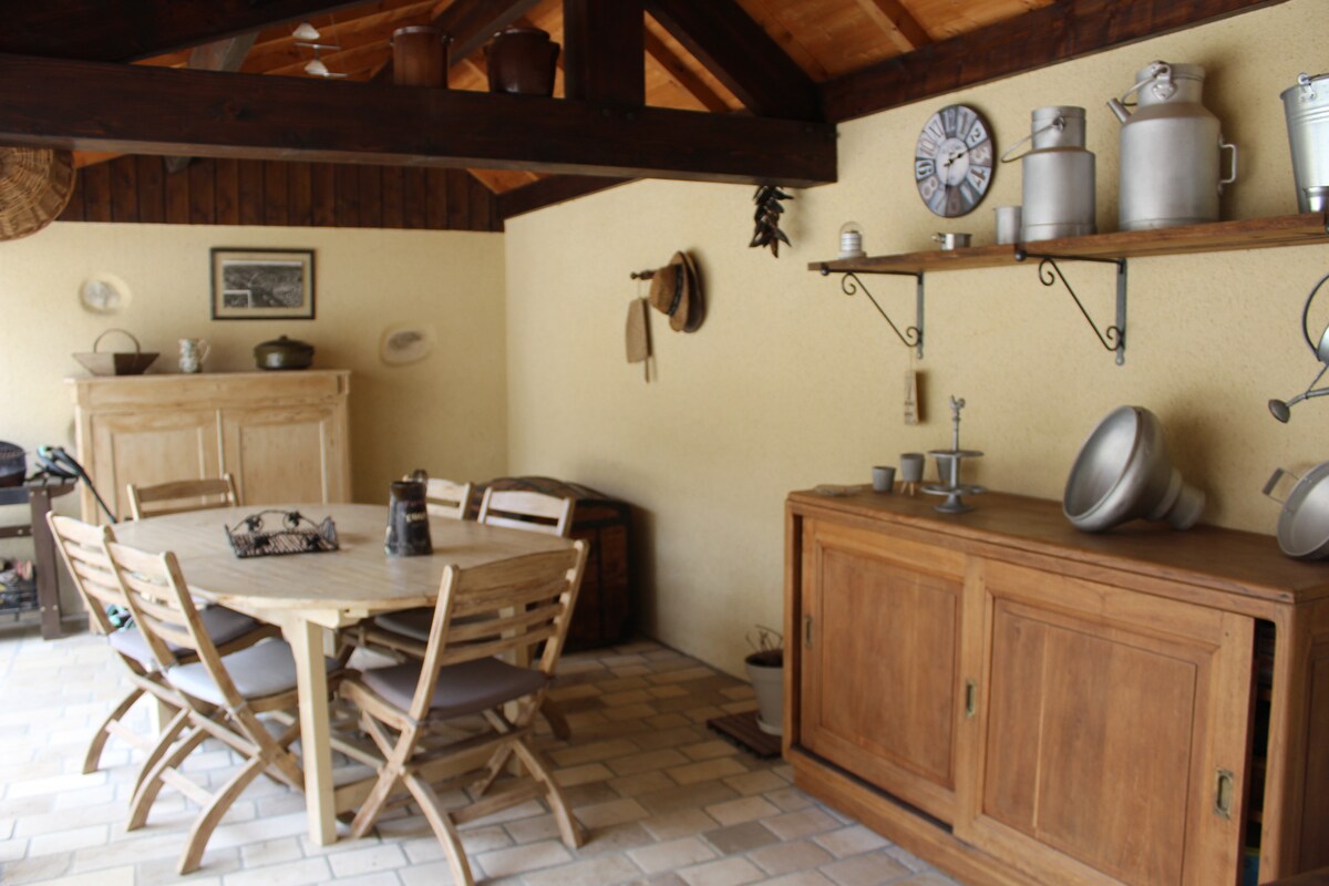 Encantadora casita independiente, que consta de 1 gran sala de estar con sofá cama, 1 cocina totalmente equipada con bar, horno, lavavajillas, nevera congelador, microondas, 1 dormitorio en altillo abierto al salón con 1 cama de 160, 1 cuarto de baño con ducha y aseo. TV de pantalla plana, reproductor de DVD, canal hi fi, juegos de mesa, libros, cd, dvd, lavadora. WiFi Terreno arbolado. Entorno tranquilo y bucólico... Hermosa terraza con parrilla, muebles de jardín. Cama hecha a la llegada.