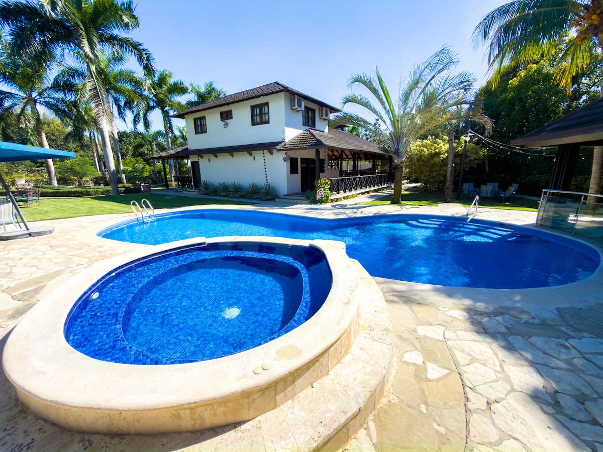Bienvenido a Yoely Ranch, ubicado en Canadá Bonita, República Dominicana, una escapada perfecta para disfrutar con amigos y familiares. El rancho ofrece una variedad de opciones de entretenimiento, que incluyen un área de juegos con mesa de billar, cancha de baloncesto y dominó. Pasa el día relajándote en la piscina, disfrutando de bebidas en el bar o preparando una deliciosa comida en el área de barbacoa al aire libre. También puedes conectarte con la naturaleza en la zona de animales, donde estarás rodeado de hermosas vistas y animales amigables.