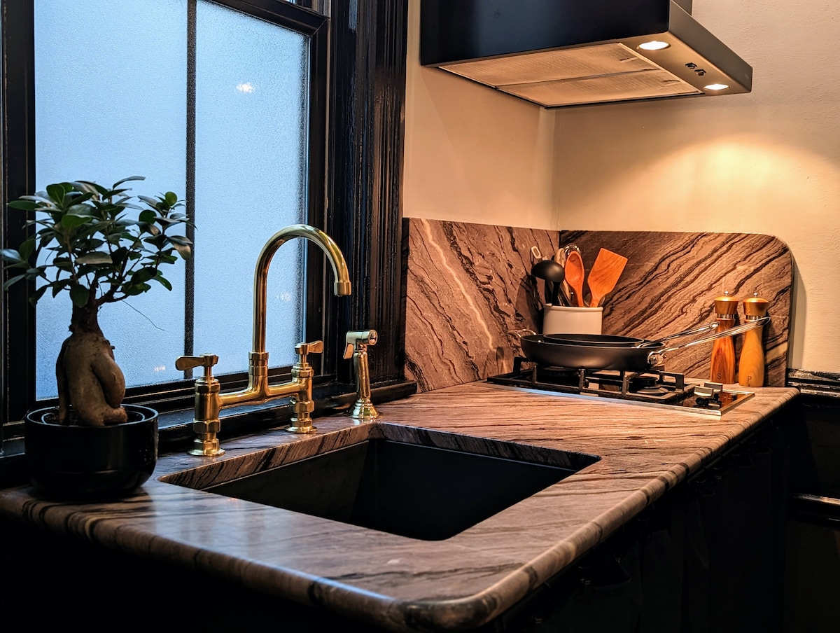 Situado en un edificio histórico en la calle principal y adornado con suelos de madera de 135 años, carpintería original, arte local, enorme ducha de lluvia y vistas al bosque, este piso de buen gusto parece transportarte a una pensión del siglo XIX. Con café expreso, galerías, música en vivo, tiendas, comida y bebidas a pocos pasos, tienes los bosques y un pequeño paisaje urbano a solo unos pasos de tu puerta. Este apartamento se ofrece en Dandy Flats, una posada restaurada con cariño.