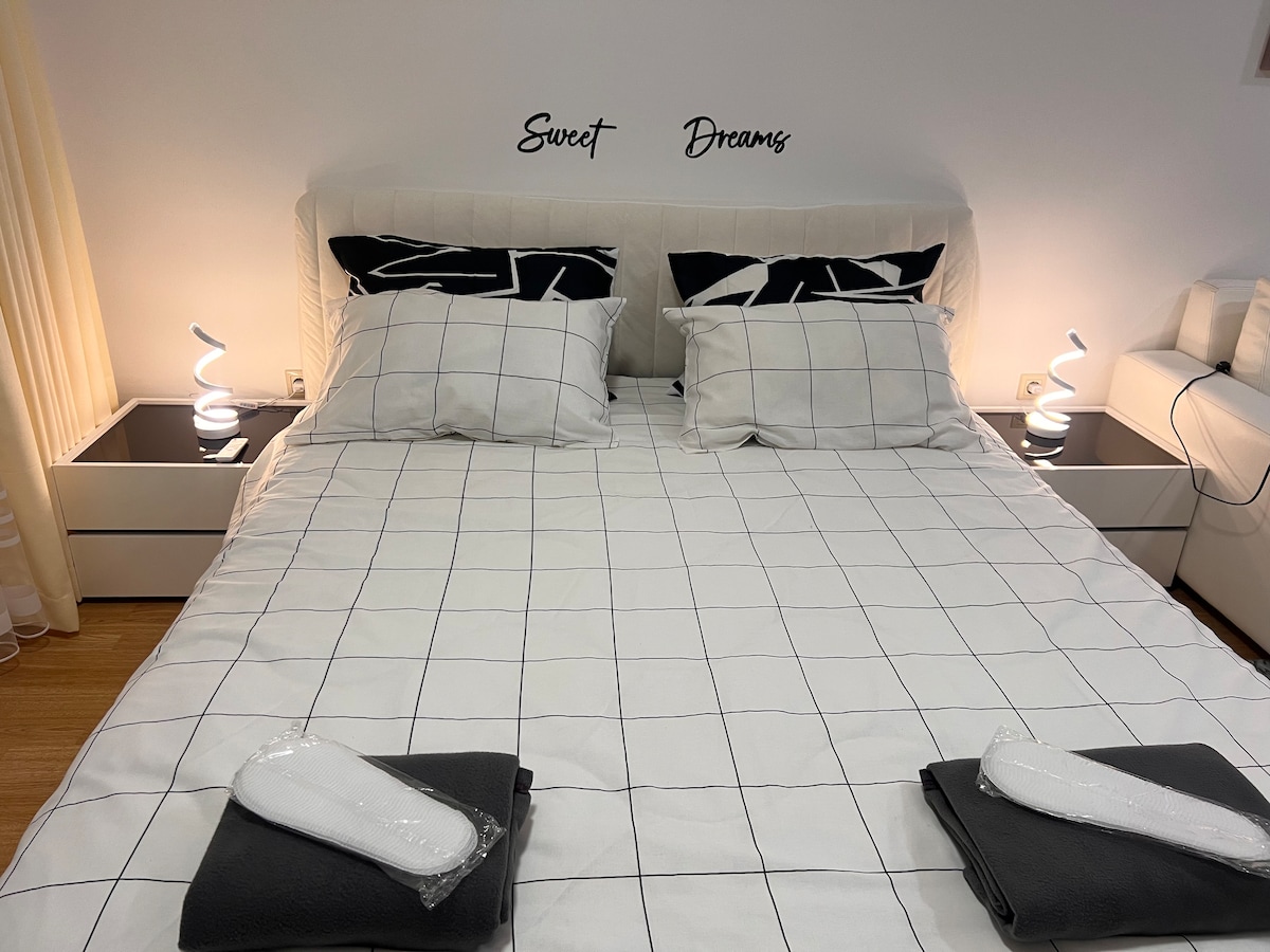 Disfruta de una experiencia de lujo en este céntrico alojamiento, situado a pocos metros de los mejores restaurantes y tiendas y a solo unos cientos de metros del campus de la Universidad Americana en Bulgaria. Cuenta con todas las instalaciones necesarias para un entorno de trabajo productivo o una escapada relajada. Situado en un edificio nuevo con ascensor, el apartamento ofrece internet de alta velocidad, cama cómoda, ambiente elegante, lavadora y secadora y una gran terraza con vistas a las colinas de Rila.