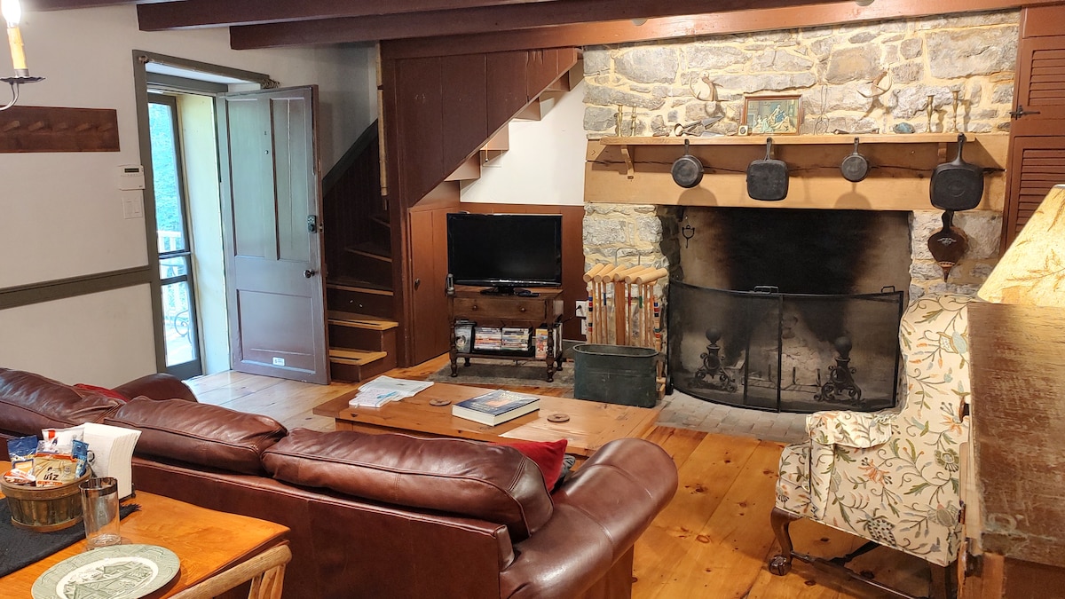 Bienvenido a una de las viviendas más antiguas del condado. Esta casa que data de ~1790 fue la residencia del gerente del molino. El acogedor espacio es una casa de 1 dormitorio y 1 baño que está decorada con buen gusto y cuenta con todos los servicios que necesitas para una escapada tranquila y silenciosa. Siéntate en el porche escuchando a los pájaros o relájate junto al arroyo con los sonidos del arroyo. La casa está en una tranquila carretera rural con poco tráfico. La casa de los propietarios y la antigua tienda de la empresa están justo al lado.