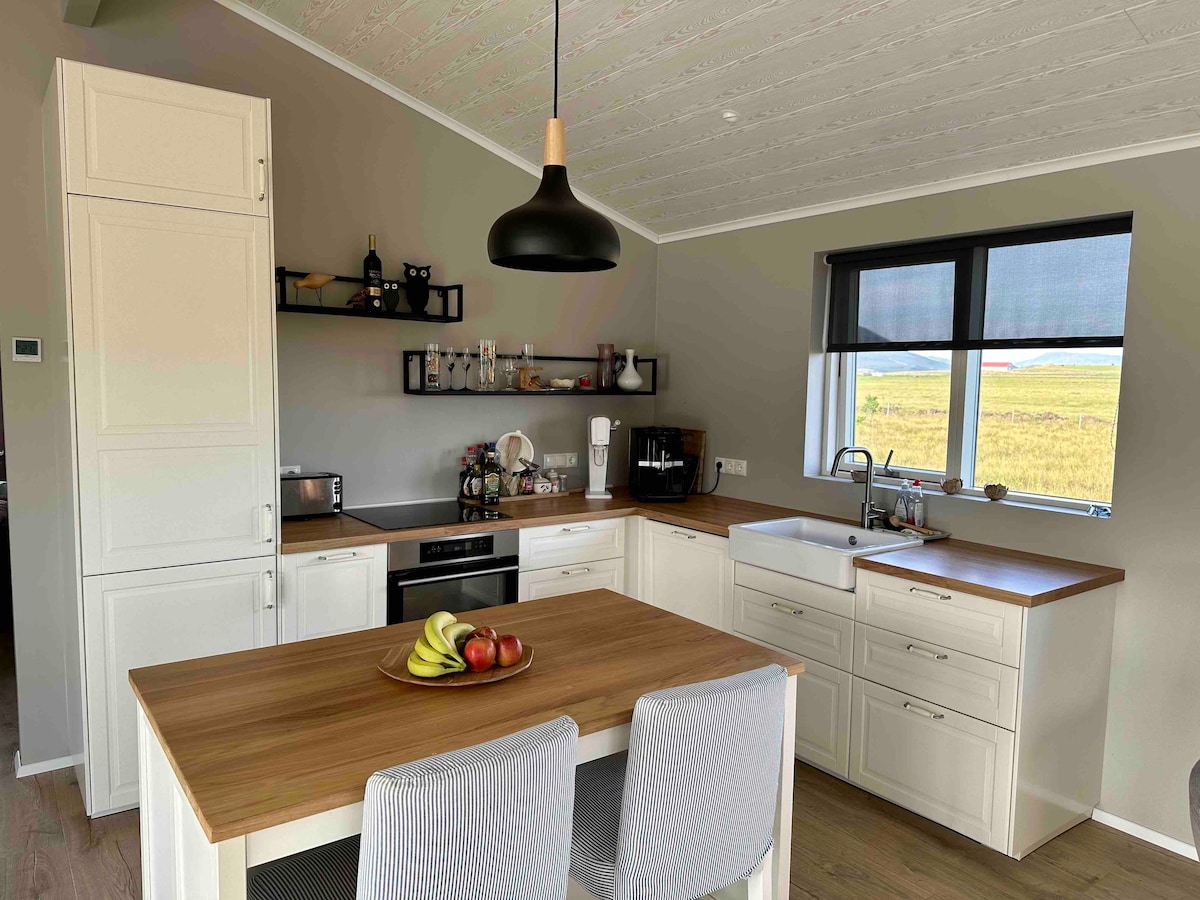 Esta escapada es muy única y aislada. Tiene unas vistas panorámicas espectaculares a la montaña sobre dos de los volcanes más famosos de Islandia y fantásticos avistamientos de auroras boreales. La casa es acogedora y tiene muchas ventanas para disfrutar de las vistas. Espacio para dormir para 4 personas, una cómoda cama de matrimonio y un sofá cama de lujo. Este alojamiento tiene mucho carácter y obras de arte islandesas en las paredes, así como wifi potente y un televisor inteligente. Cuarto de lavado privado con lavadora y secadora.