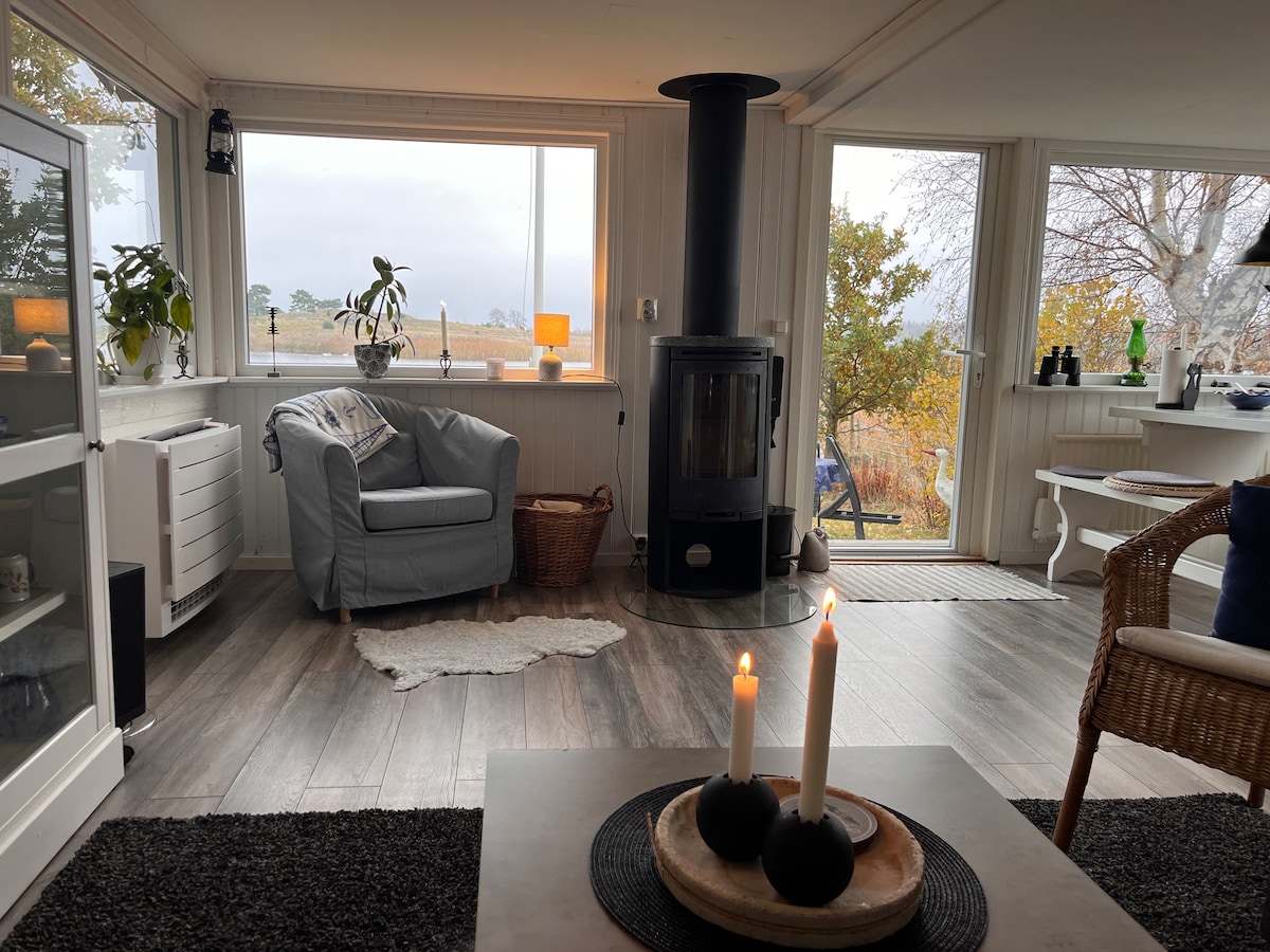Cabaña con el mar en tres direcciones. Siente la tranquilidad y disfruta de la vista cuando disfrutes de tu desayuno al amanecer. La rica avifauna fuera de la ventana de la cabaña es una experiencia increíble. Una acogedora cabaña con todas las comodidades que necesitas. Vivir durante todo el año para que se puedan experimentar todas nuestras estaciones. Se admiten mascotas. Cerca de una gasolinera y una tienda, así como una buena distancia a Ronneby y Karlskrona con todos sus lugares de interés.