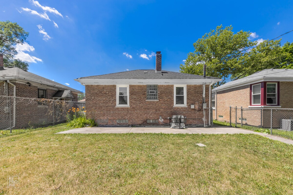 Casa rancho de 3 dormitorios y 2 baños en un callejón sin salida tranquilo. Gran vallado en el patio trasero para que los niños, el perro y los adultos jueguen durante el día y luego se relajen junto al fuego por la noche. A poca distancia a pie (50 pies) del bar/restaurante con entrada privada. A 15 millas (25 minutos) del centro de Chicago. Y para ustedes, las parejas, vuelvan a casa después de su ajetreado día, siéntense y relájense en la bañera de hidromasaje de 8 chorros que os acomodará cómodamente a los dos.