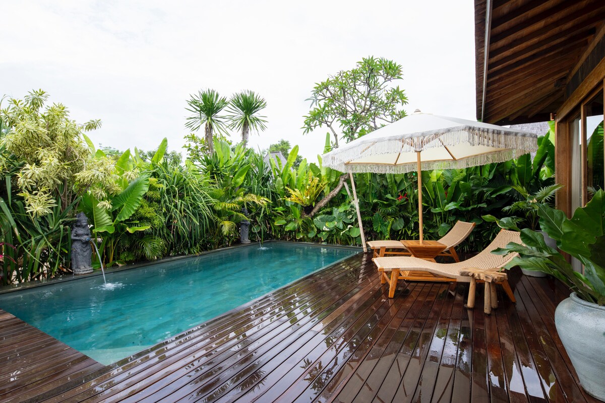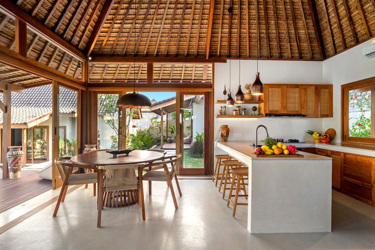 Villa privada de diseño en Bingin con piscina — perfecta para parejas y estancias especiales. Un espacio cálido que se siente como en casa y ofrece una experiencia única en Bali. El salón abierto conecta con tu jardín y piscina privada—perfecto para mañanas tranquilas, baños al atardecer y noches relajadas. Ideal para escapadas románticas con privacidad y confort. Cama king-size, Wi-Fi, Smart TV y parking incluidos. Cerca de Bingin Beach, cafés y restaurantes. Ubicación ideal para explorar.