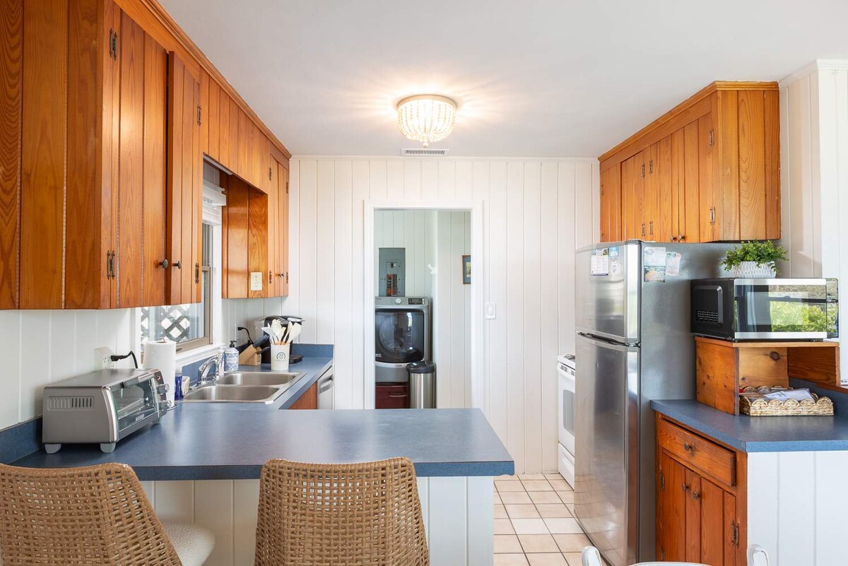 Esta encantadora casa de campo ubicada a pocos pasos del mar está cargada de carácter. Originalmente construida para ser un restaurante en 1948, ¡ha sido renovada y convertida en un alquiler encantador para que la disfrutes! Esta pequeña casa de campo tiene 810 pies cuadrados, 1 dormitorio con cama tamaño king y 2 camas individuales tamaño xl en el dormitorio con literas, 1 sofá cama tamaño queen en el invernadero, 1 baño, con una sala de estar abierta, comedor y cocina. ¡El porche es un lugar favorito para tomar un café por la mañana o disfrutar de la hora feliz por la noche!