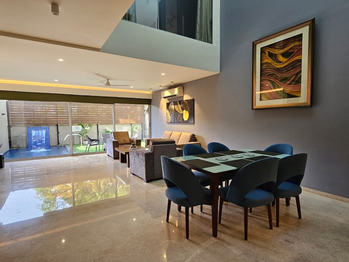 Esta villa «IKSHAA®» con piscina privada es una de las villas más aisladas y románticas que combina el lujo con la belleza rústica. Es una villa independiente que personifica la exclusividad y la privacidad completa. La vegetación y el bosque que la rodean son encantadores y, sin embargo, se encuentra a solo 20 minutos en coche del aeropuerto de Goa o de las playas más cercanas del sur de Goa. ¡No tendrás problemas para sentirte como en casa aquí en IKSHAA®!