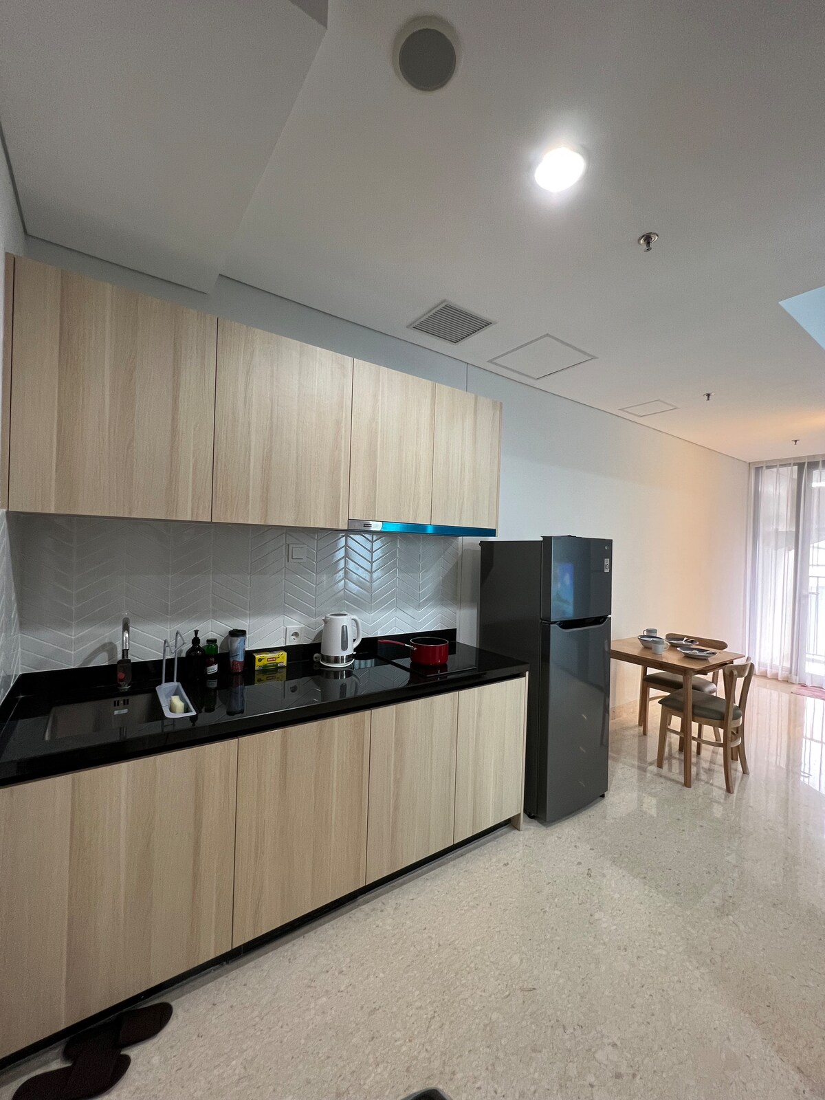Departamento NUEVO, elegante y apto para niños. ubicado y conectado con Aeon Mall, Viene con 1 dormitorio con cama de ALTA CAPACIDAD, Apto para 4 adultos + nuevo televisor inteligente Android 4K La unidad se conecta directamente a AEON Japan Mall @ Tanjung Barat La unidad del apartamento tiene instalaciones enormes, como un hotel de 5 estrellas. Puedes ver todas las fotos reales *a continuación DETALLES e instalaciones de VIDEO, etc. están en nuestro ig @SLS_SANLIVING