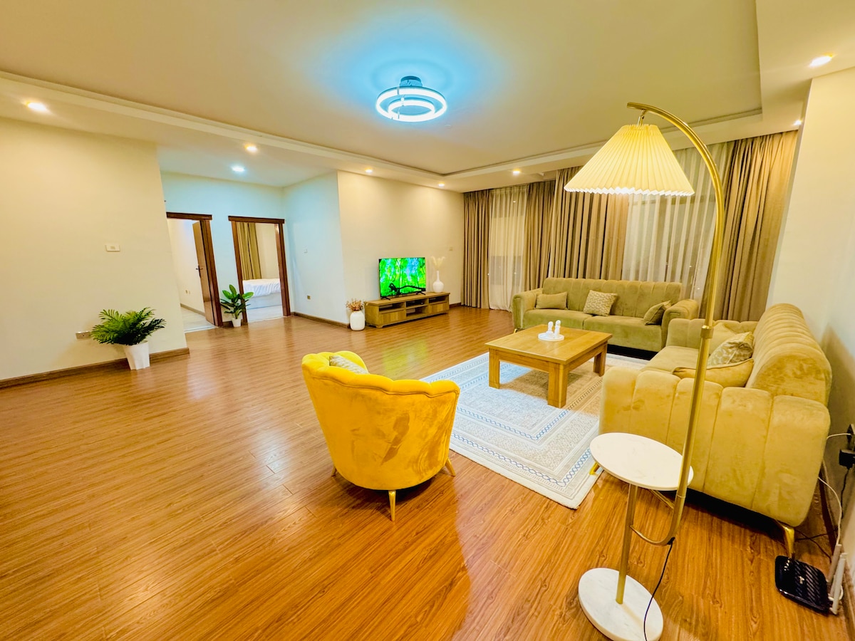 Disfruta de un moderno departamento de 3 dormitorios con impresionantes vistas a la ciudad de Addis, ventanas del piso al techo y balcón privado. Cuenta con una luminosa sala de estar abierta, iluminación elegante, cocina totalmente equipada, conexión Wi-Fi rápida, televisor inteligente y lavandería. Ubicado en un barrio tranquilo y exclusivo de Yeka, es ideal para familias, viajeros de negocios y estancias largas.