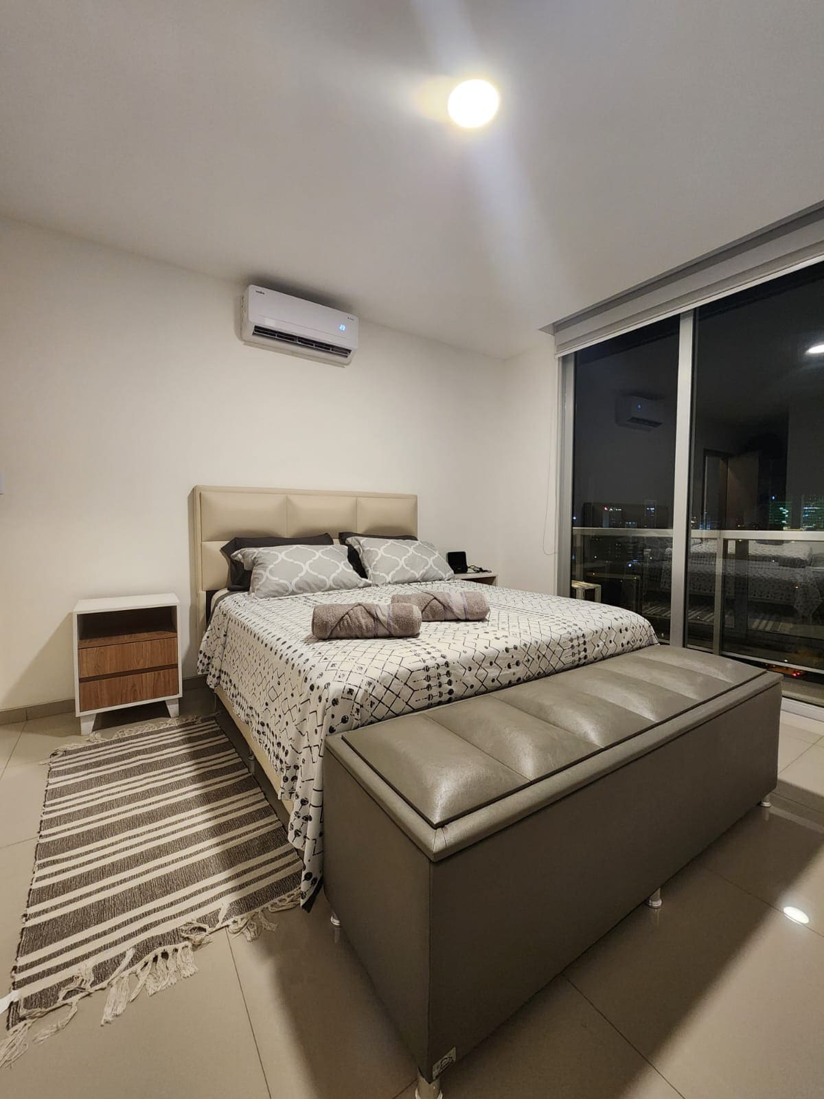 Disfruta de una estancia placentera en este departamento moderno con vista espectacular, ideal para descansar o trabajar con total comodidad. Cuenta con areas de relax (piscina, sauna seco, vapor y gimnasio), cada detalle ha sido pensado para ofrecerte una experiencia acogedora, práctica y agradable. Ubicado en una zona estrategica, tranquila y segura, cerca de cafés, embajadas, bancos, supermercados, restaurantes y transporte público. Perfecto para parejas, viajeros o estancias por trabajo.