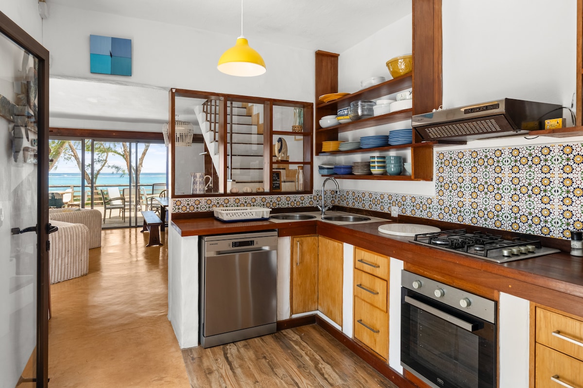 Esta hermosa propiedad de playa en una zona muy tranquila de la bahía de Tamarin ha sido recientemente renovada . Estamos ubicados entre el mar y el río y a solo 30 pasos de una hermosa playa privada lo suficientemente cerca. Ideal para familias de hasta 6 personas con 3 dormitorios grandes, dos habitaciones arriba, dormitorio principal en la planta baja con vistas a la playa. Como oferta especial, te proporcionaremos un coche de alquiler gratuito durante tu estancia con nosotros, lo que te ahorrará al menos 25 euros por día.