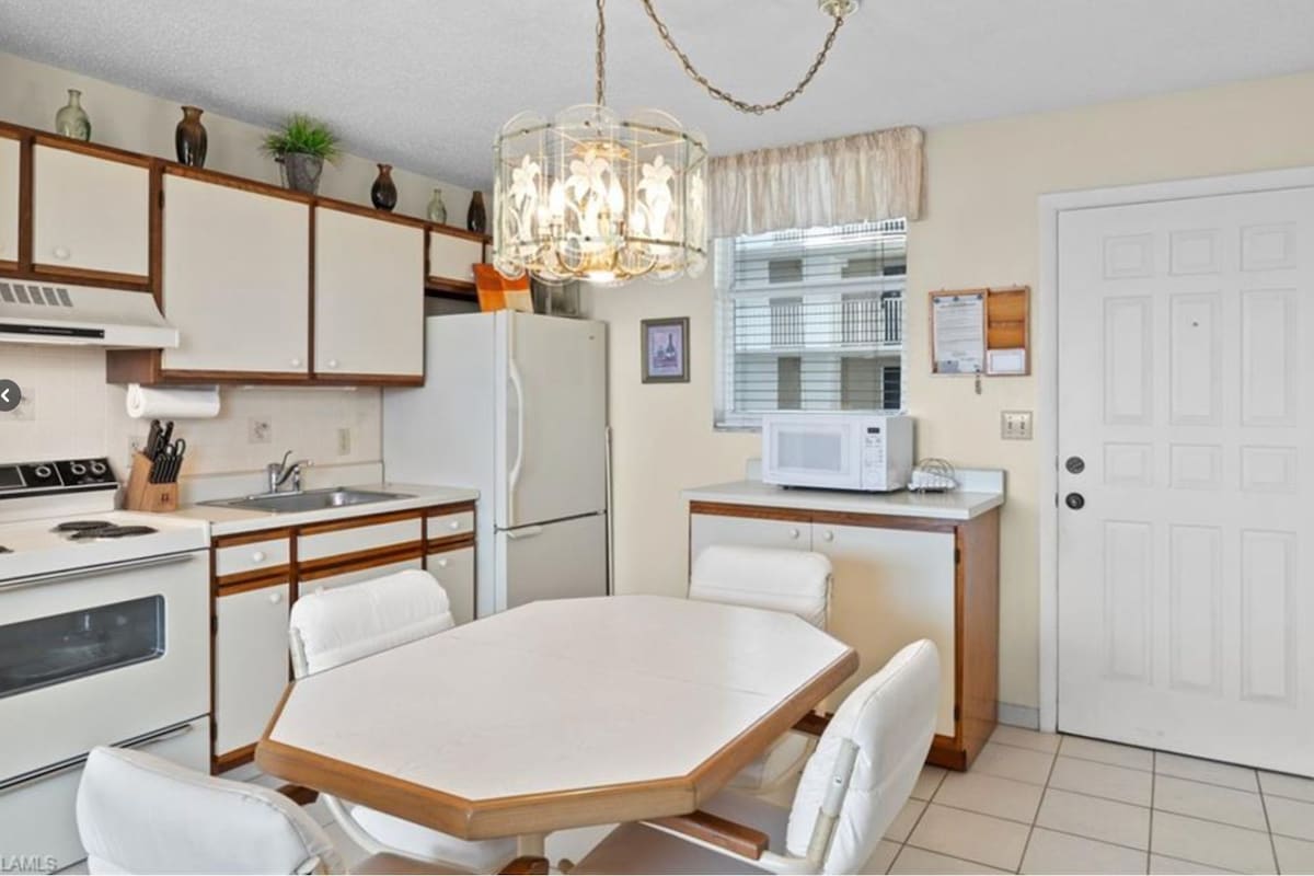 ¡Bienvenido a nuestro paraíso de Bonita Beach que nos encantaría compartir con tu familia! ¡Esta unidad es recientemente renovada y todos los electrodomésticos, los muebles, y los accesorios son nuevos! ¡Disfruta del océano y 🌴 las vistas desde el condominio! Equipado con todos los muebles que necesitas para disfrutar de tus vacaciones! 1 Dormitorio + 1 Baño. Junto con un sofá cama extraíble. Refrigerador, horno/estufa, microondas y lavadora y secadora en la unidad. ¡Exactamente a .25 millas a pie de la playa y a poca distancia a pie de los restaurantes locales!