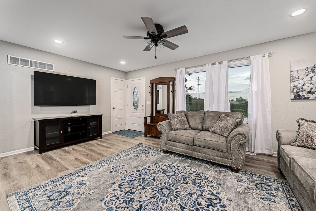 1 cama tamaño king. 1 colchón de aire doble plegable (solicita cama plegable). Lavadora/secadora para tu uso. Wi-Fi de fibra. Área de patio trasero cercada por separado con entrada privada a tu área de sótano que se encuentra alrededor de la parte trasera de nuestra casa principal. Espacio de estacionamiento en la propiedad. Parque para perros, senderos para caminar. Se cobra una tarifa por mascotas. Cerca de la autopista y de las tiendas. También contamos con paneles solares que proporcionan algo de respaldo para el calor/aire y refrigeración. Todo el sótano de luz diurna está separado de nosotros arriba con la puerta cerrada. Tiene un par de escalones.