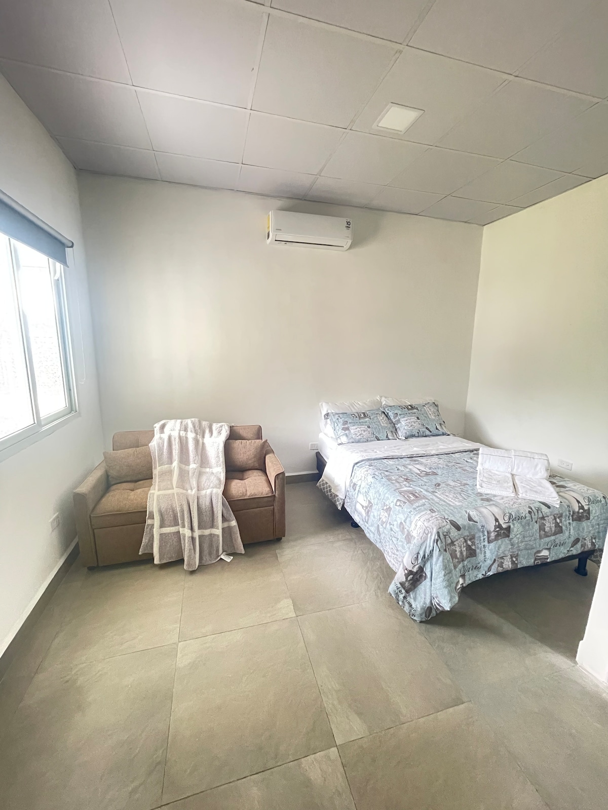 Ideal para familias (padres e hijos) que desean compartir en un espacio cómodo y acogedor en Boquete. Cuenta con una habitación con cama king y camarote (doble + ¾), baño privado y medio baño exterior. Su cocina es completamente equipada, perfecta para quienes prefieren cocinar durante su estadía. La sala y comedor amplios, junto a su interior revestido en madera, crean un ambiente cálido y familiar. Forma parte de una propiedad con tres alojamientos y áreas exteriores compartidas.