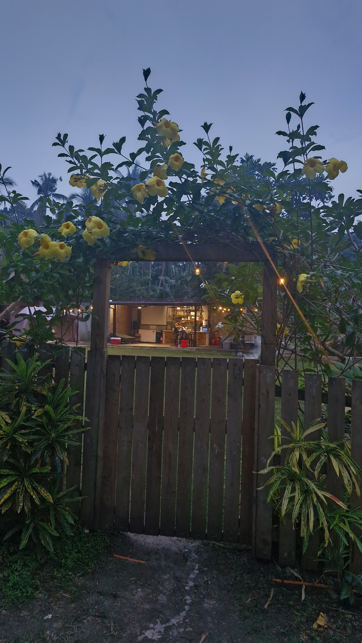 Despiértate con fuerza viendo el amanecer desde la cama principal del dormitorio. Una casa elevada de dos dormitorios con grandes patios privados. La familia anfitriona vive a 100 metros de distancia. Podemos comprar, cocinar, guiar el transporte. Siempre hay opciones de alquiler de motocicletas localmente. El segundo dormitorio es ideal para niños, pero proporcionamos una cuarta cama plegable para 4 adultos. Escritorios de trabajo sólidos y la señal WIFI GRATUITA incluida es rápida. Escápate aquí a la serenidad, la calidez y la naturaleza, playas a 15 minutos.