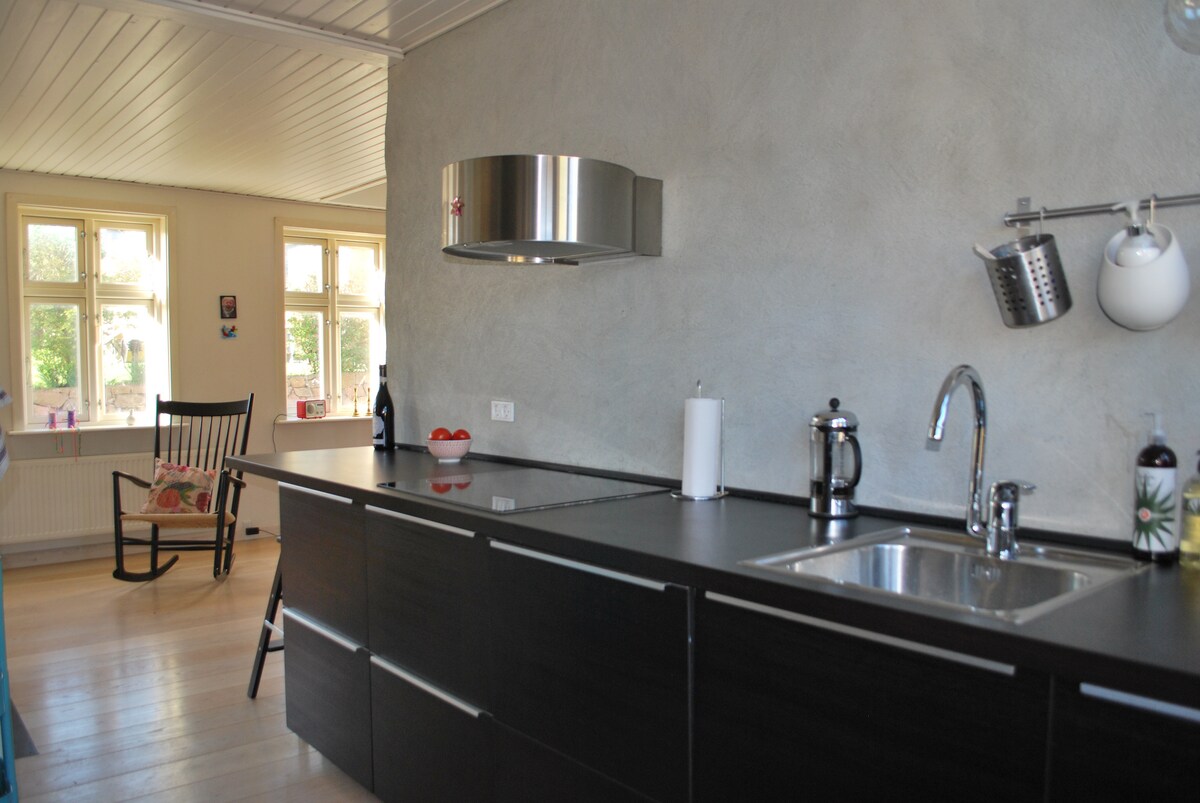 Entorno luminoso y tranquilo, patio cerrado y acogedor, granja de cuatro alas de 1825. Apartamento independiente con entrada privada, cocina pequeña, dormitorio adicional y baño. A no más de 5 minutos de una maravillosa playa, costas pintorescas, un puerto local y un restaurante/ahumadero. Encantador, tranquilo y limpio idilio. Tenemos un bed and breakfast desde 2003. El alojamiento no es recomendable para personas con problemas de movilidad.
